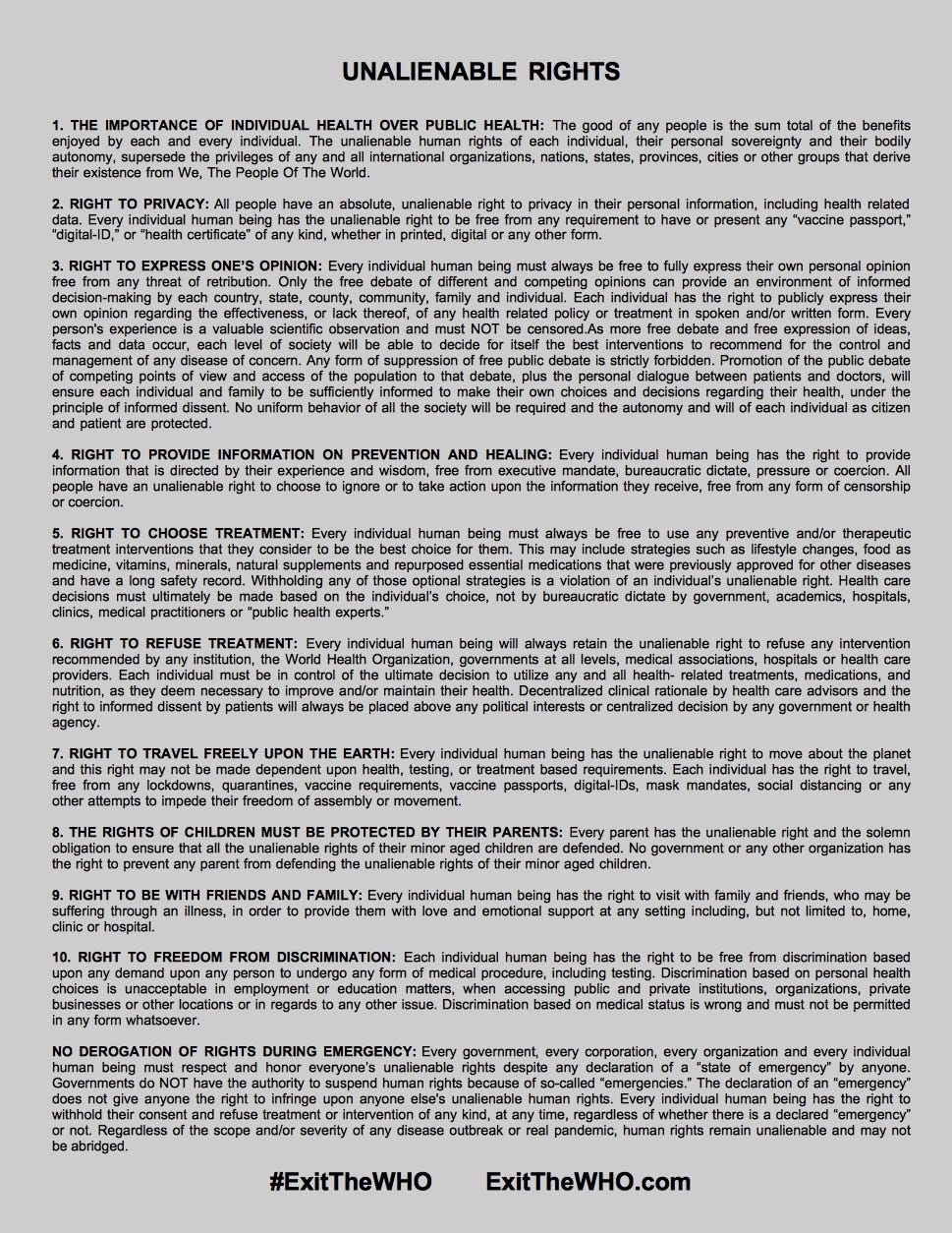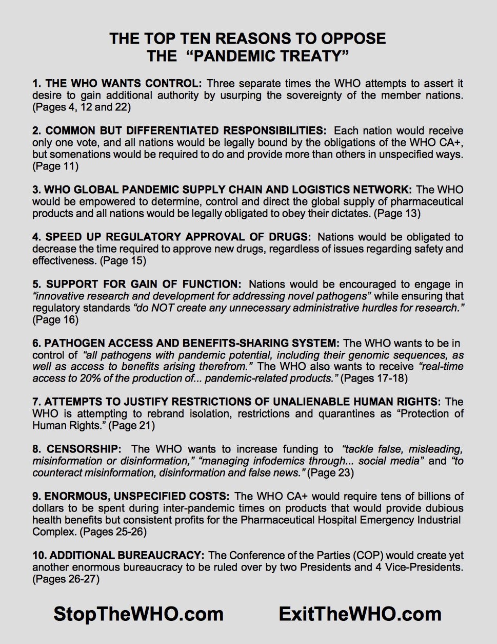 What follows are 100 of the many reasons why we must stop the proposed “Pandemic Treaty”, we must stop the proposed amendments to the International Health Regulations every nation on earth must #ExitTheWHO.