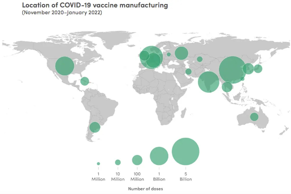I absolutely understand that the data below does not define a causal relationship between death and vaccine production, but it certainly does NOT give credence to the claim that geographical distribution of vaccine manufacturing will help prevent future pandemics.