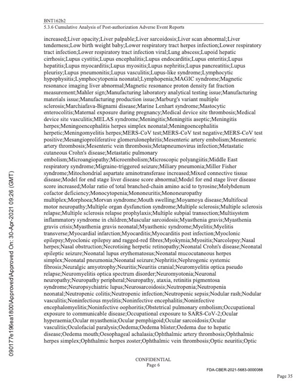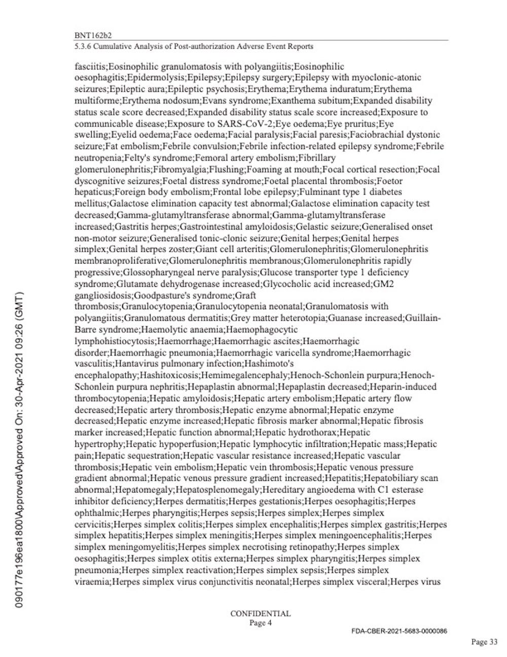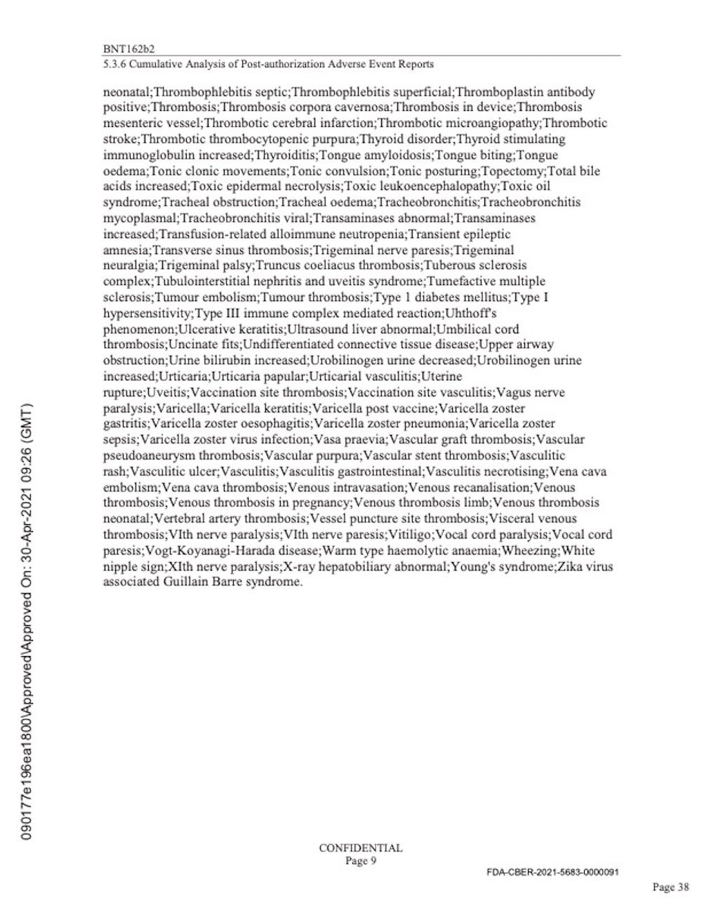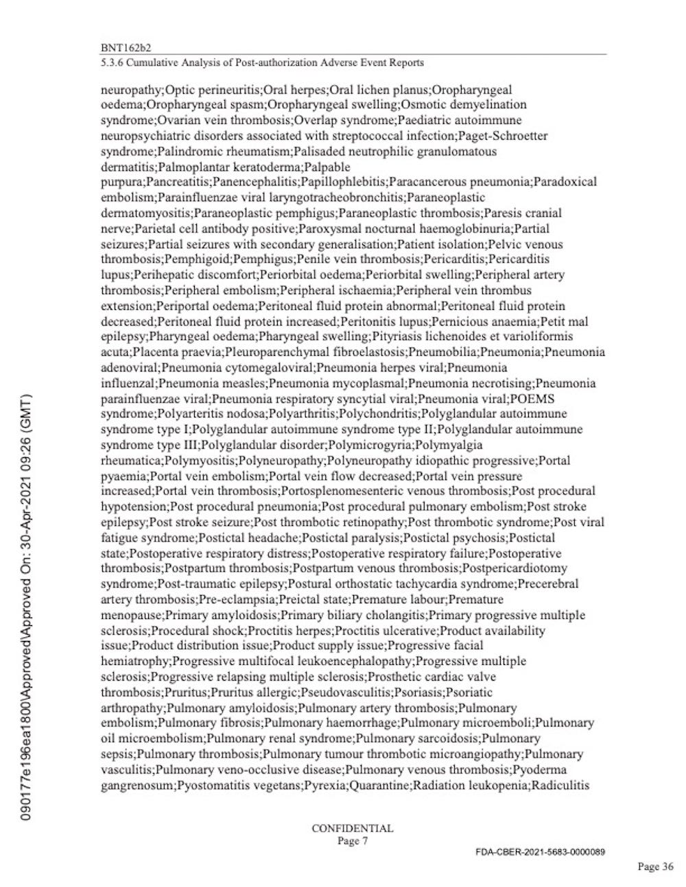Pfizer’s “Cumulative Analysis of Post-authorization Adverse Event Reports.”