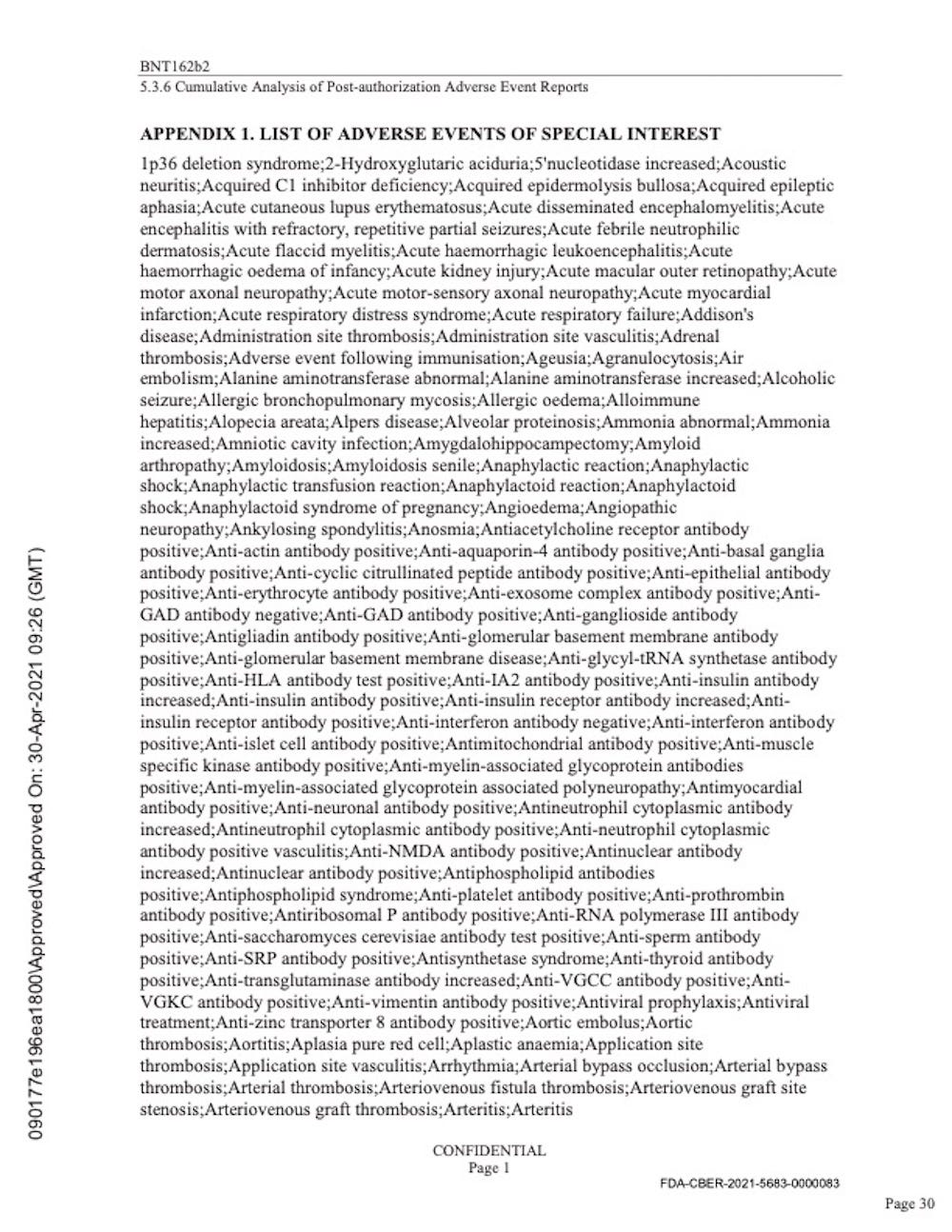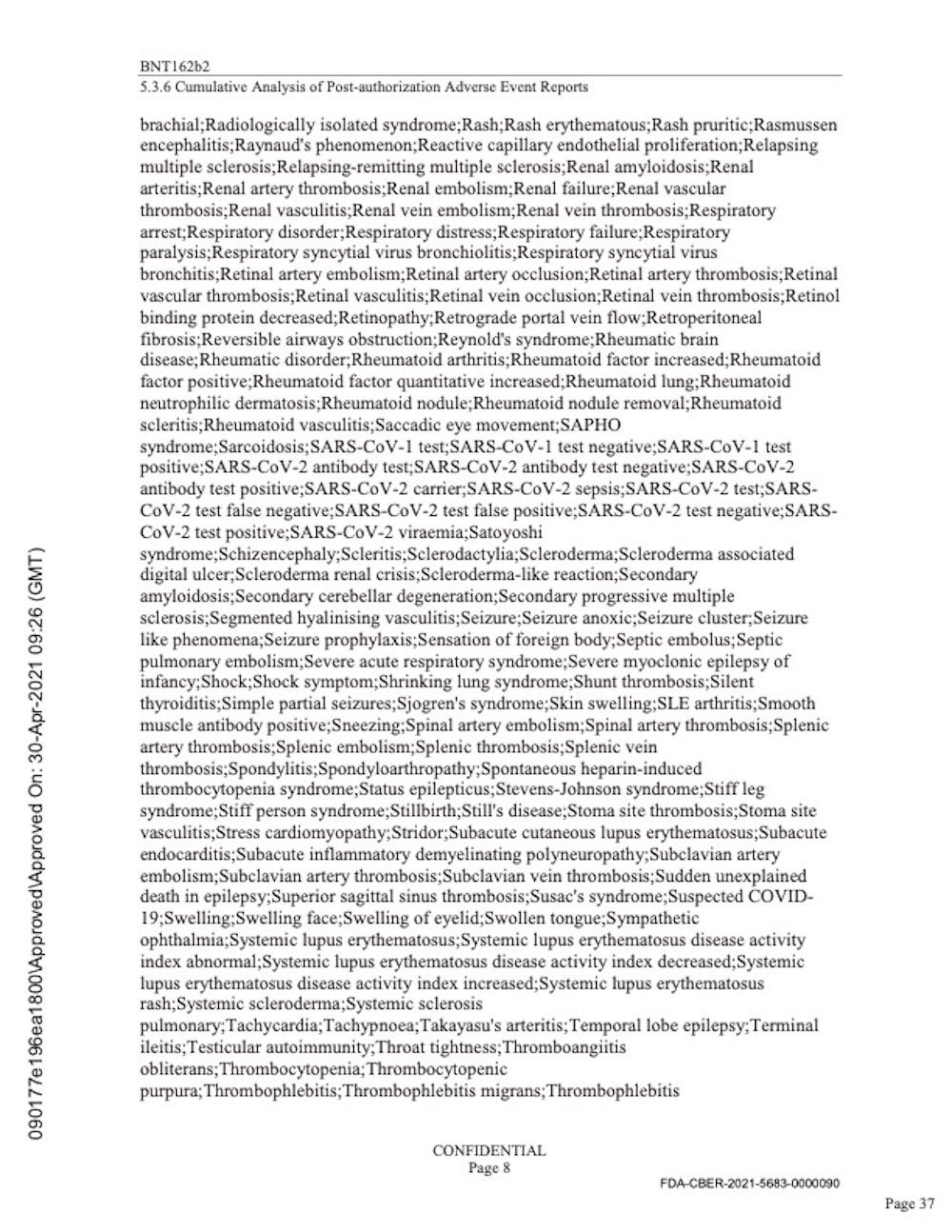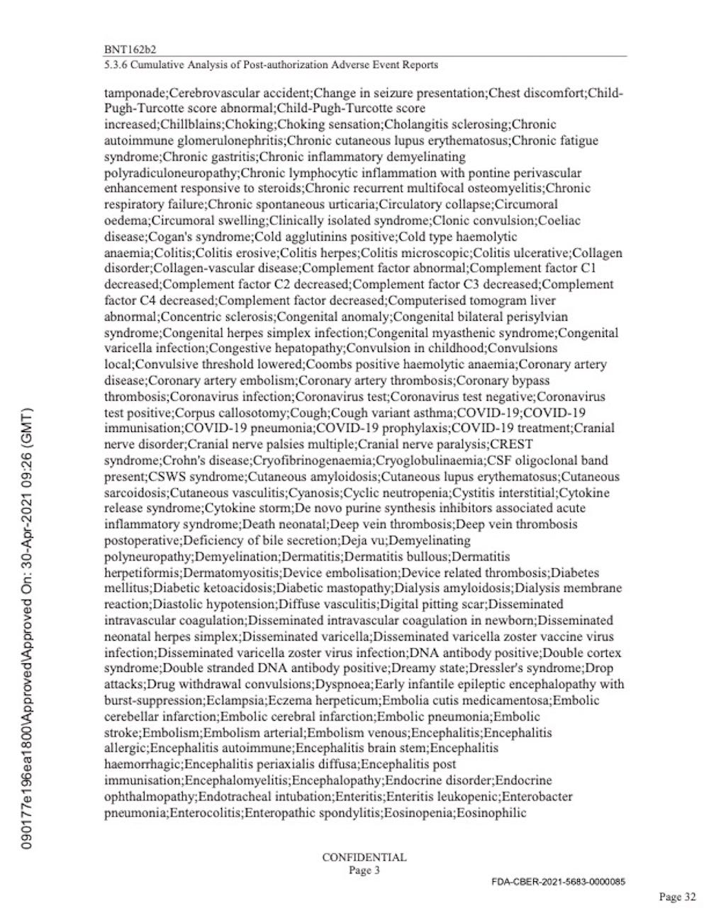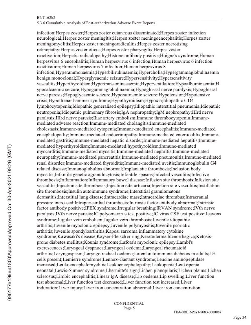 Pfizer’s “Cumulative Analysis of Post-authorization Adverse Event Reports.”