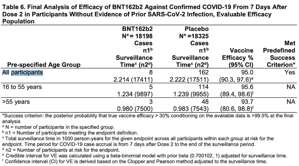 The oft-repeated claim that the “vaccines” were 95% efficacious was based on the relative risk ratio. However, for the participants in the placebo group, the risk of being diagnosed with COVID-19 was only 162/18325= 0.9%.