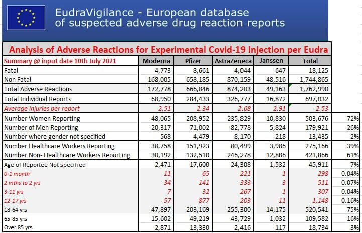 Thank you again for these valuable statistics. Even with all these statistics we still do not know the extent of death and destruction from this psyop on the world. There are many who are not and will not be accounted for in these statistics because they were not reported by those who could have reported. For example, my half sister died after getting the Pfizer jab but not before spending exactly 2 months on a ventilator. Her husband would not listen to me or look at the information I sent him. My dear neighbor and friend died of Turbo Cancer because he trusted his doctor - you know the person who insisted he get 5 shots. He would not even look at the valuable information I gave him that might have helped him improve. Neighbors and other friends have suffered the ill effects of the jabs but never reported their adverse events. One person walks with walking sticks still years later. She used to walk all over town, then took the first shot.