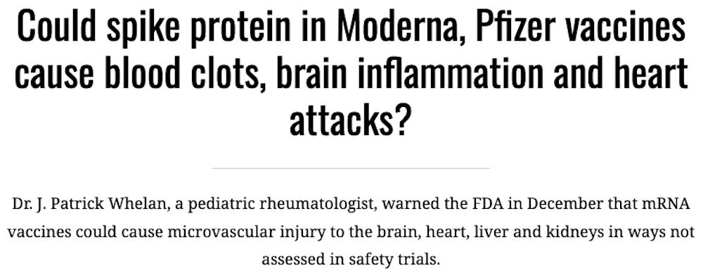 In his public submission, Whelan sought to alert the FDA about the potential for vaccines designed to create immunity to the SARS-CoV-2 spike protein to instead cause injuries.