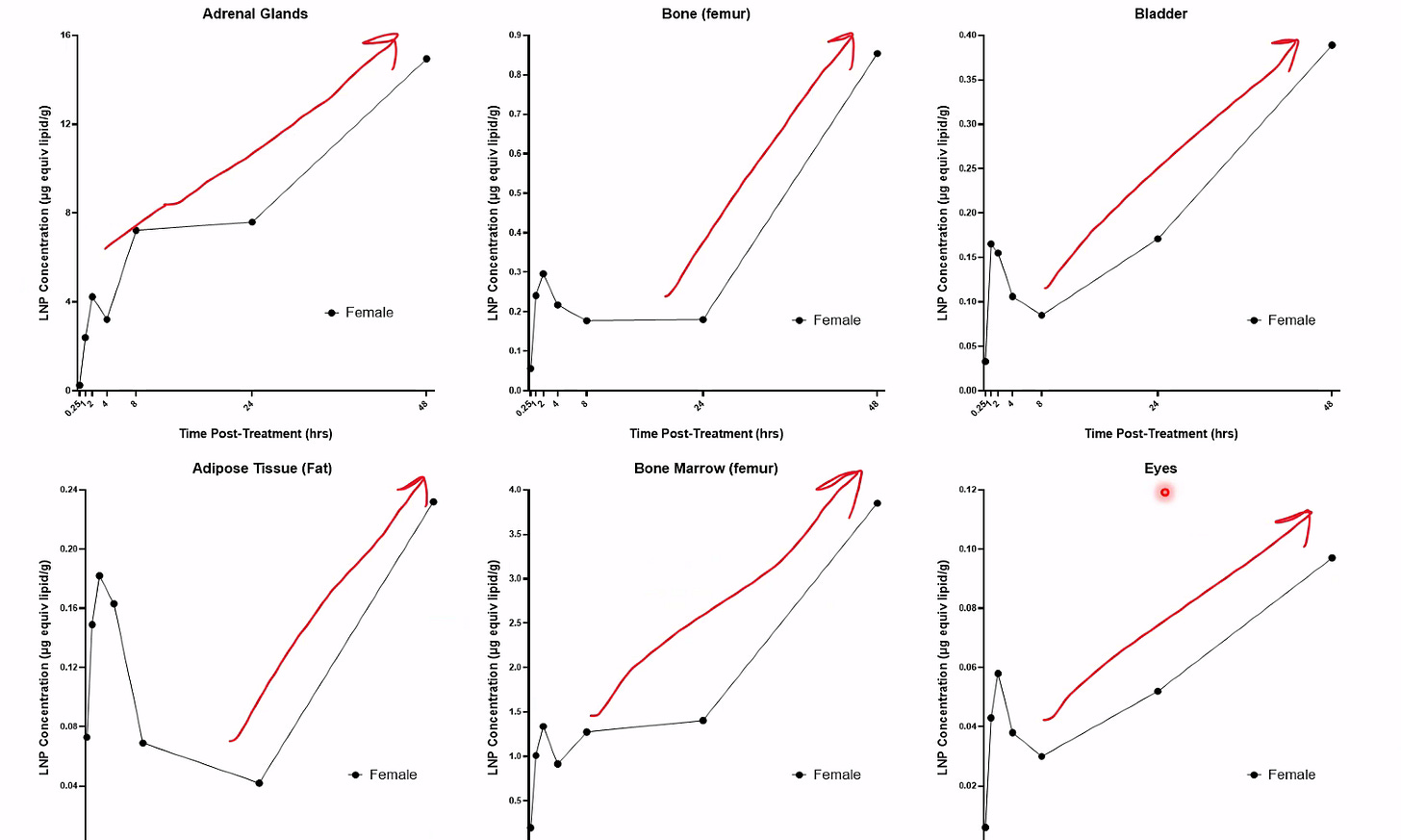 The lipid nanoparticles do NOT remain in the arm. They go throughout the body and concentrate in the Liver, Spleen, Adrenal Glands, Ovaries and Bone Marrow.