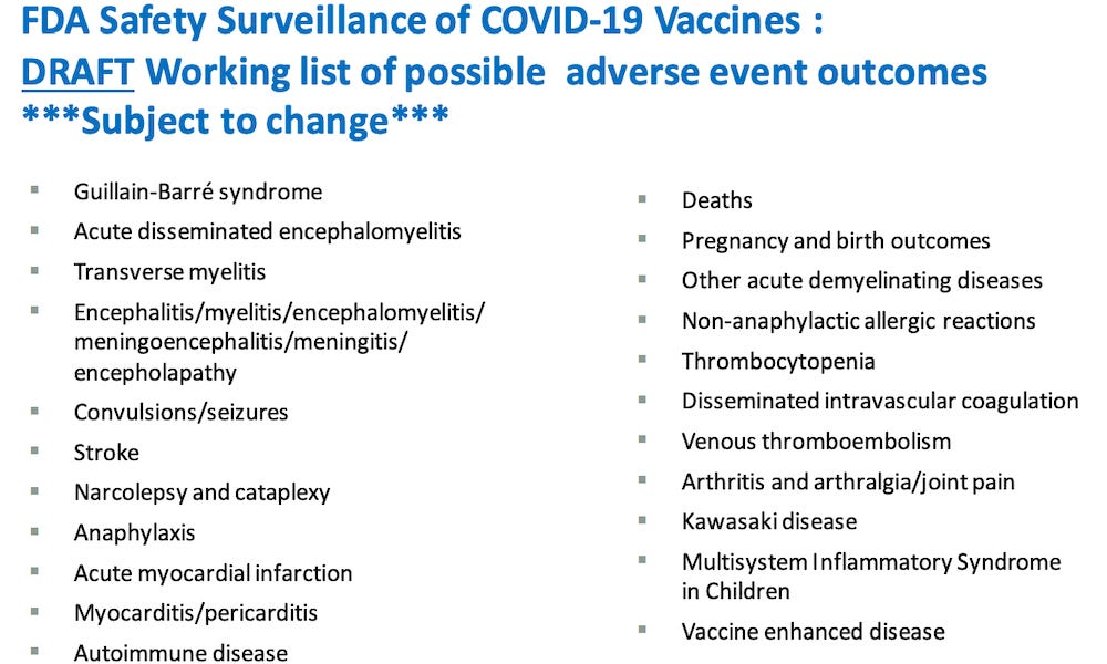 The FDA was aware of quite a number of potential serious adverse events that could be caused by the COVID-19 “vaccines.”