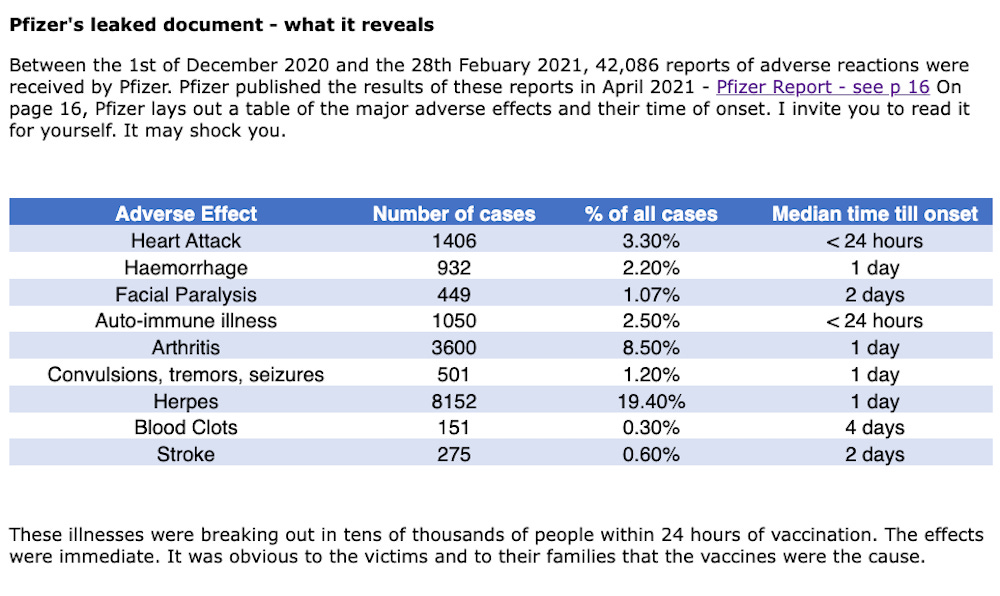 The 393-page document below details the extent of the suffering that Pfizer knew was caused by their “vaccine.”