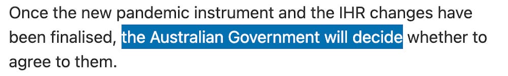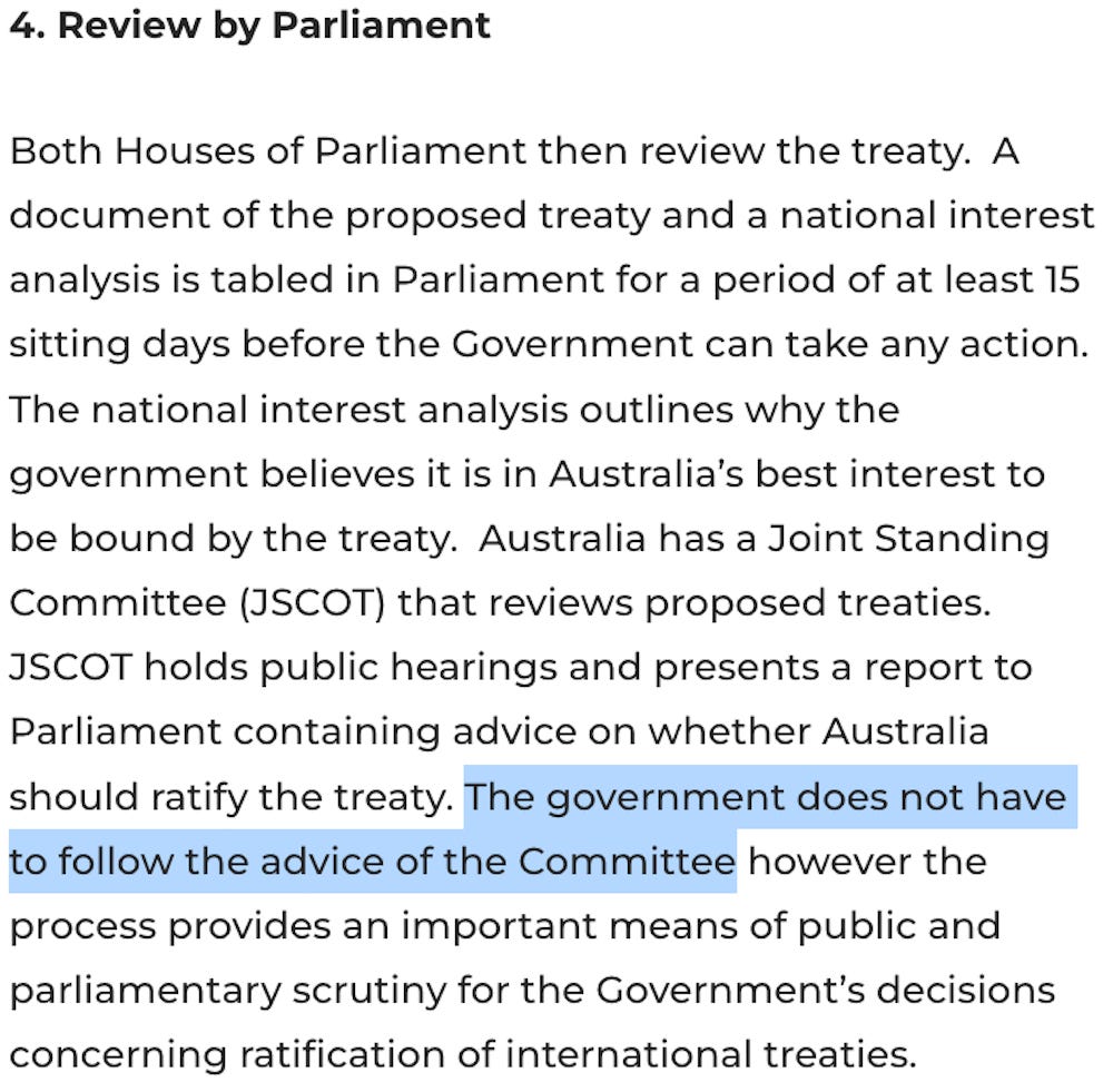 The Australian Parliament DOES NOT have the authority to ratify or reject the proposed amendments to the International Health Regulations, nor does it have the authority to ratify or reject the proposed “Pandemic Agreement.”