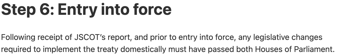 The Australian Parliament will NOT vote to ratify or reject these agreements.