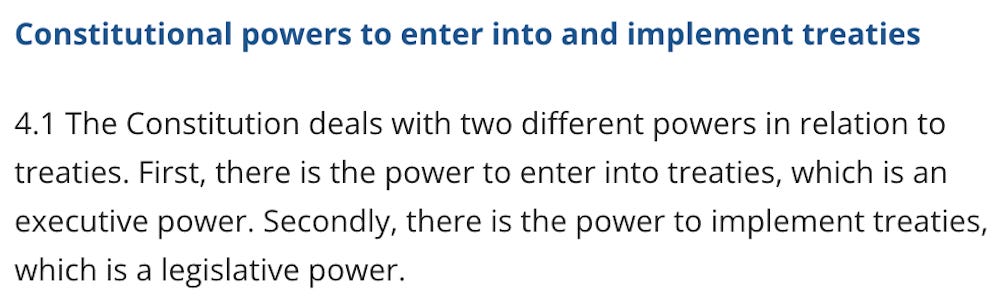 The people of Australia must understand that the executive branch of government has the sole authority to enter into treaties, conventions, agreements or amendments to existing WHO regulations.