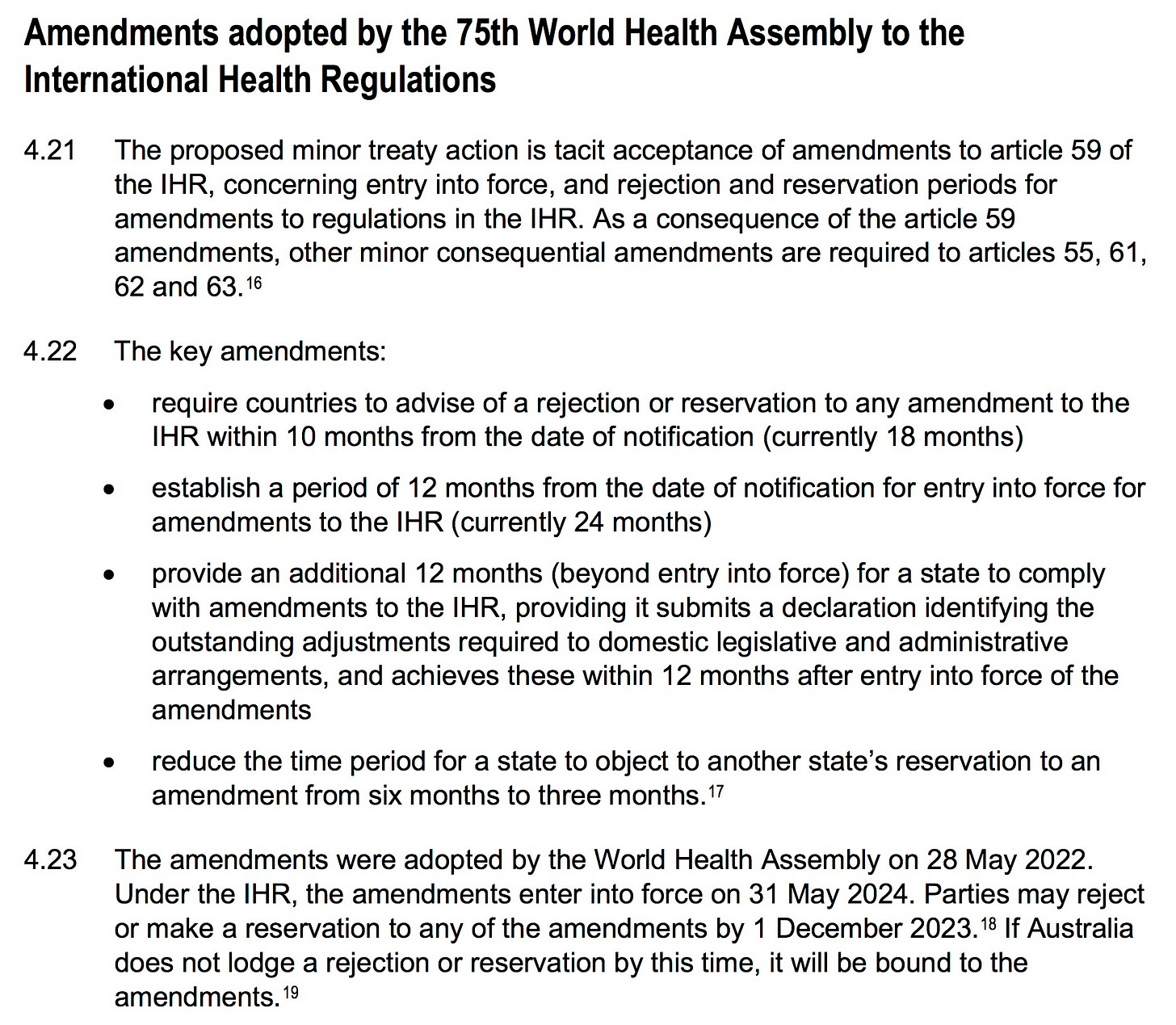 THE DEADLINE TO REJECT THE AMENDMENTS IS DECEMBER 1, 2023 Amendments to the International Health Regulations were adopted at the 75th World Health Assembly on May 27, 2022. There is an 18 month period during which the leader of every nation can REJECT the amendments under Article 61 of the International Health Regulations.