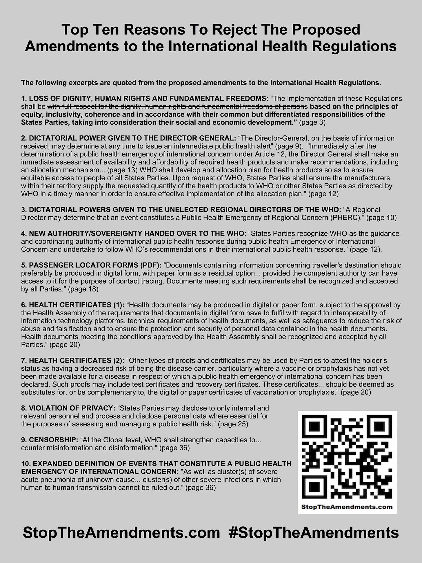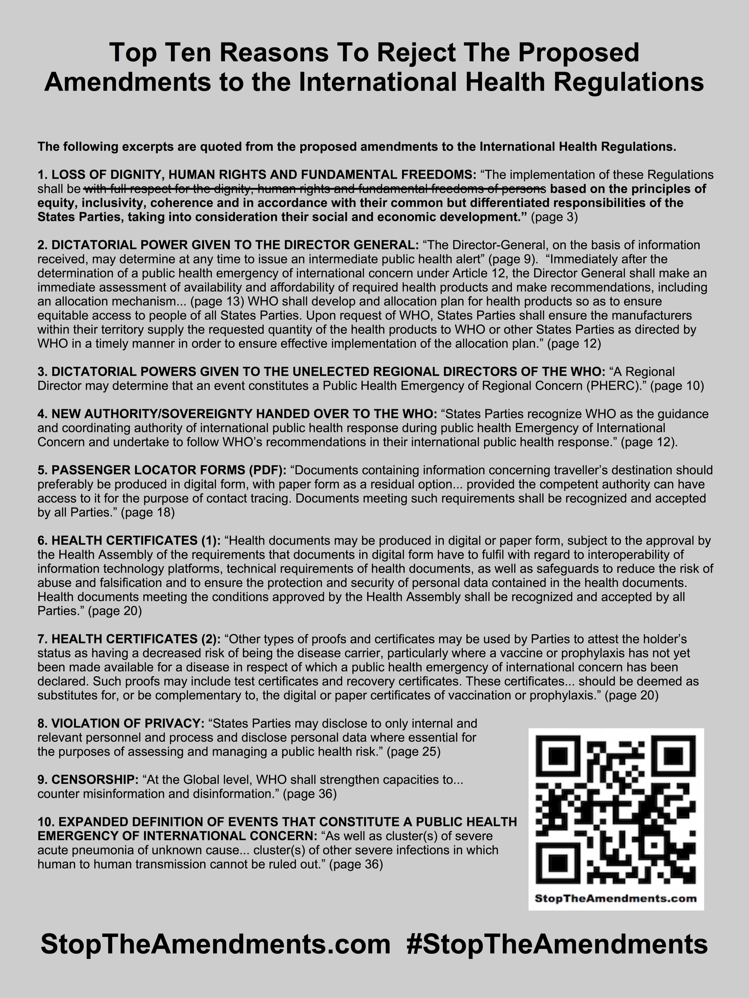 Top Ten Reasons To Reject The Proposed Amendments to the International Health Regulations