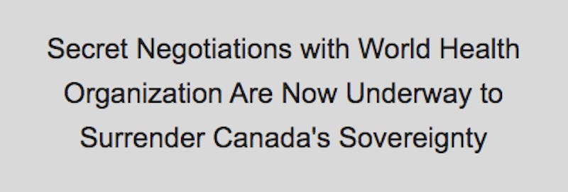 CLICK HERE to send an email to every member of of the Canadian Parliament regarding the World Health Organization’s proposed Pandemic Treaty and amendments to the International Health Regulations.