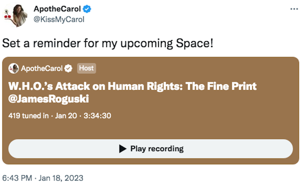 If anyone would like to hang out on Twitter Spaces and discuss the proposed amendments to the International Health Regulations, just let me know. @JamesRoguski or 310-619-3055