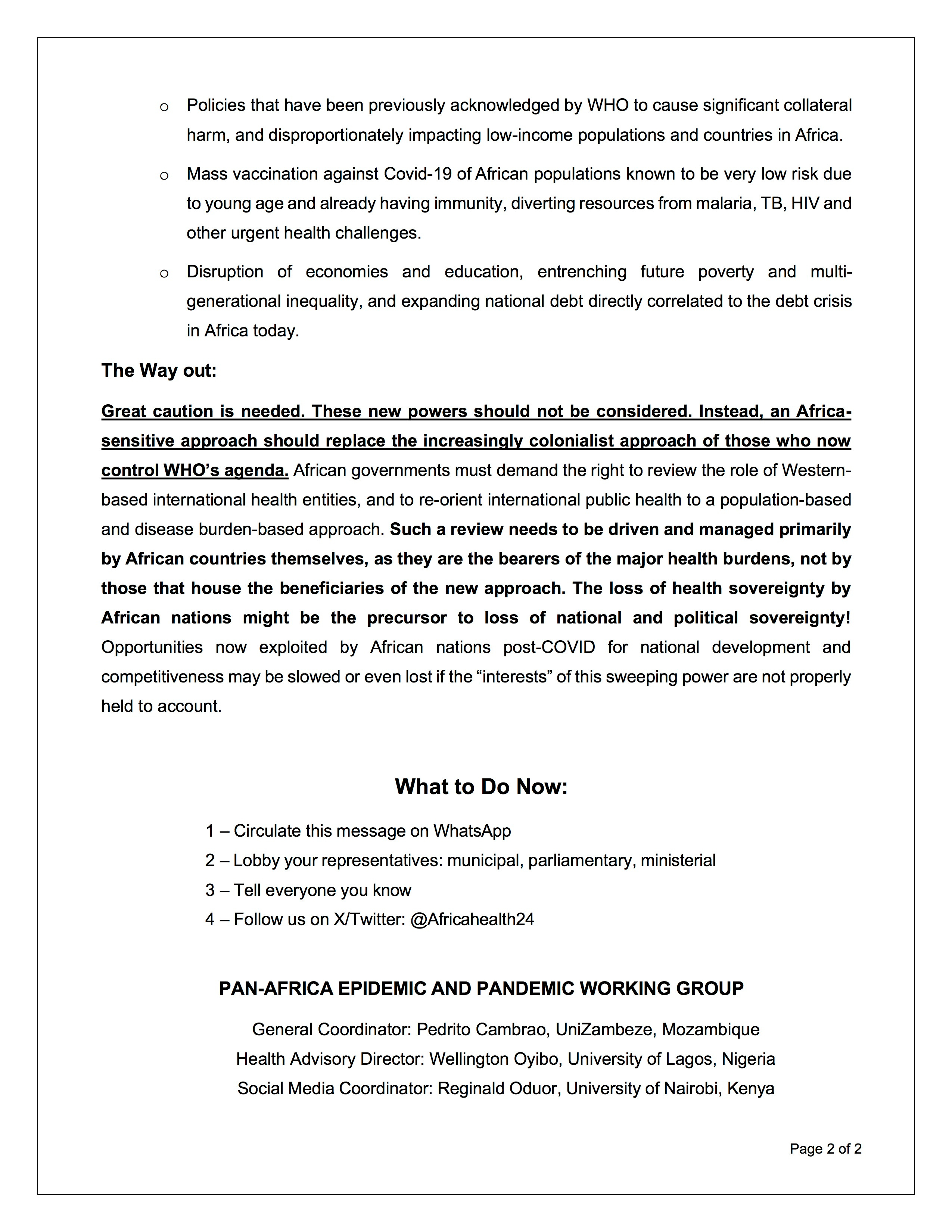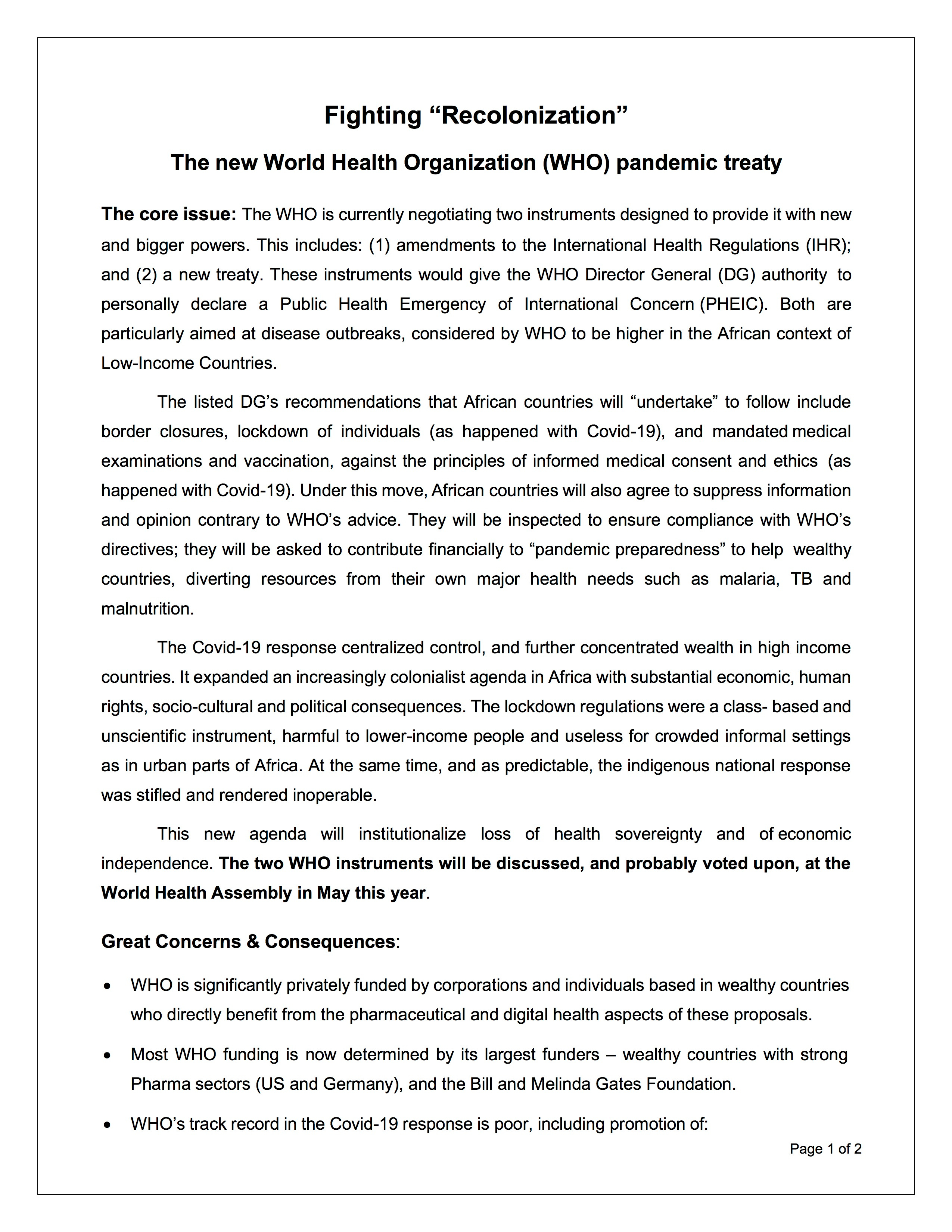 The FACT that the Working Group for amendments to the International Health Regulations are overstepping their authority under Article 21 of the WHO Constitution. DETAILS