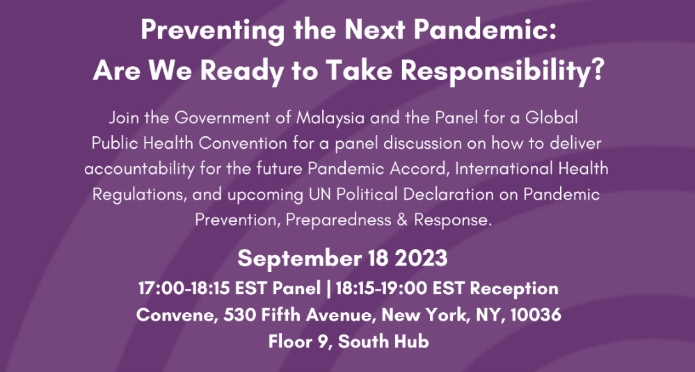 The Panel for a Global Public Health Convention and the Government of Malaysia are pleased to invite you to a panel discussion during the 78th United Nations General Assembly on September 18, 2023.