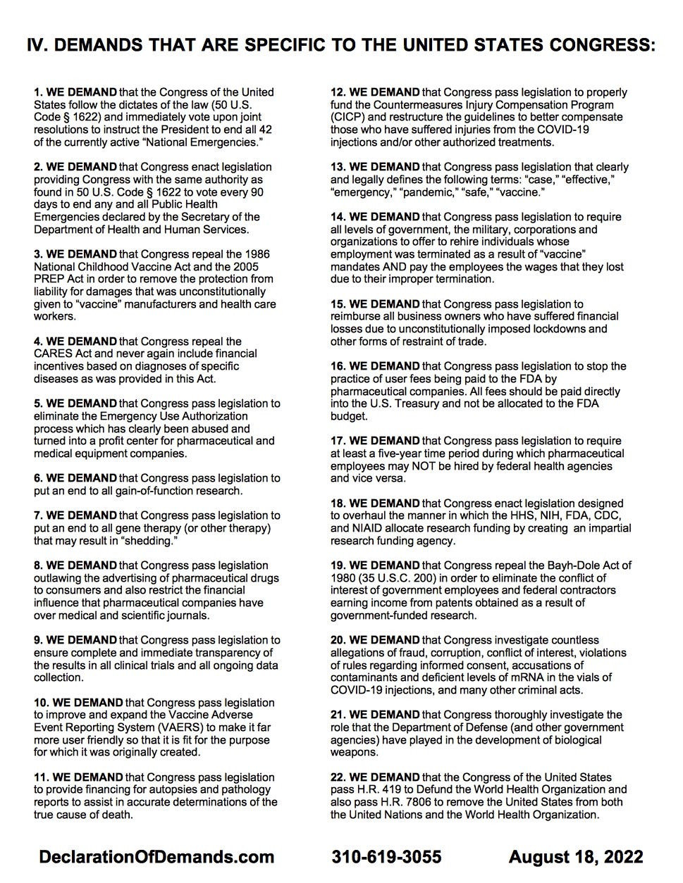 IV. DEMANDS THAT ARE SPECIFIC TO THE UNITED STATES CONGRESS