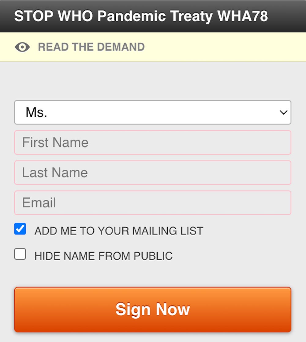If you oppose the "Pandemic Agreement," then RIGHT NOW would be a great time to take action. Don't YOU dare just sit on your butt - TAKE ACTION NOW!