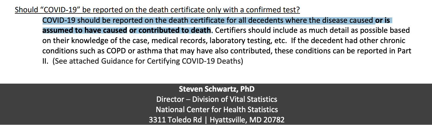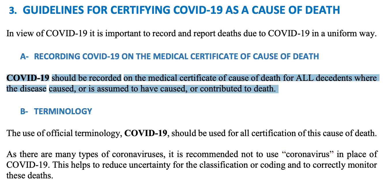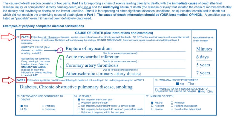 This is from the CDC’s own guidance explaining how to properly fill out CoD’s on a death certificate (you don’t need to understand the difference between Cause A, B, etc for this article):
