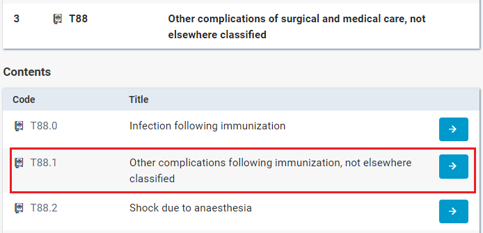 T88.1 – Other complications following immunization, not elsewhere classified.