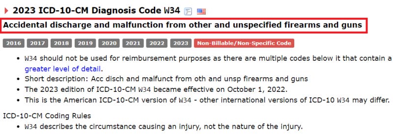 One would have to wonder how such an errant code came to be, especially on a death certificate that contains other ICD 10 shenanigans. It is unlikely that ‘Y590’ or ‘T881’ would be ‘misspelled’ or algorithmically mixed up with ‘W34.’