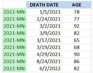 Another noteworthy tidbit here is the age of the decedents: every single one is a senior citizen, and the average age of the decedents is 80. This is important to highlight because whereas young people “dying suddenly” stands out, there has been much less attention or acknowledgement of the covid vaccine’s devastating toll upon the old and frail, where deaths – even those that occur in close proximity to vaccination – are readily attributed to prior health conditions.