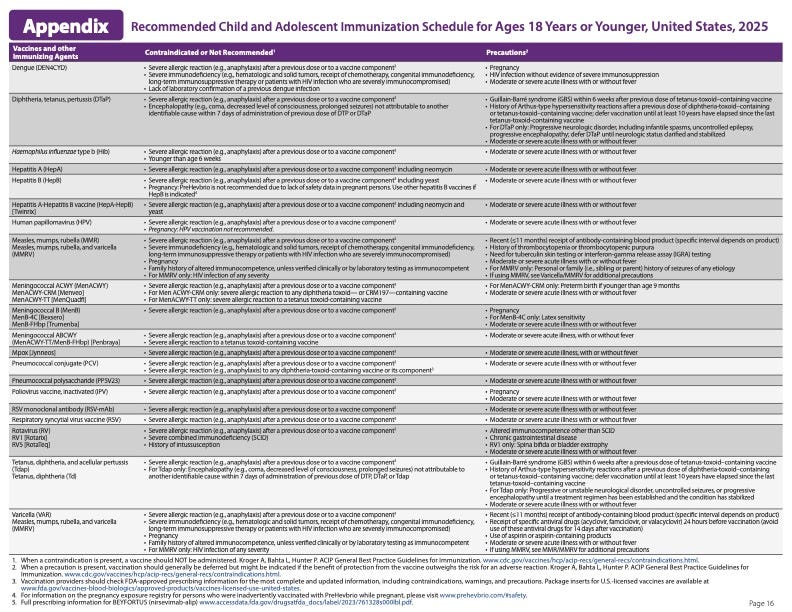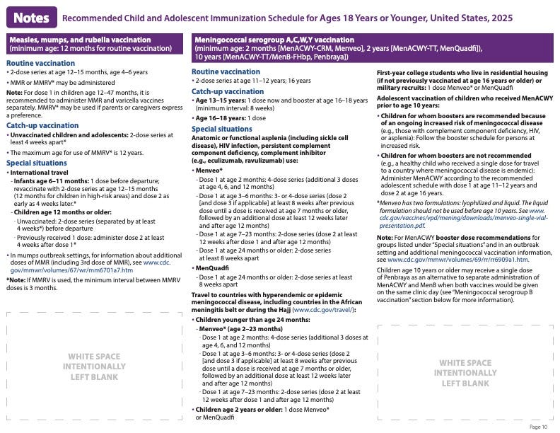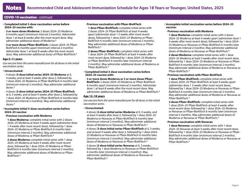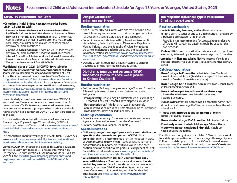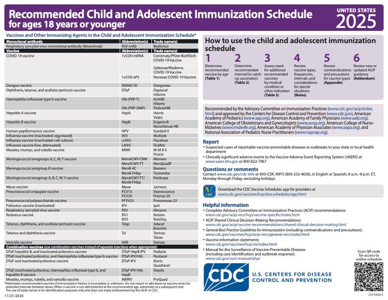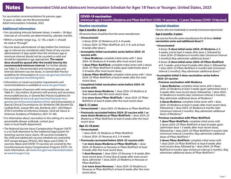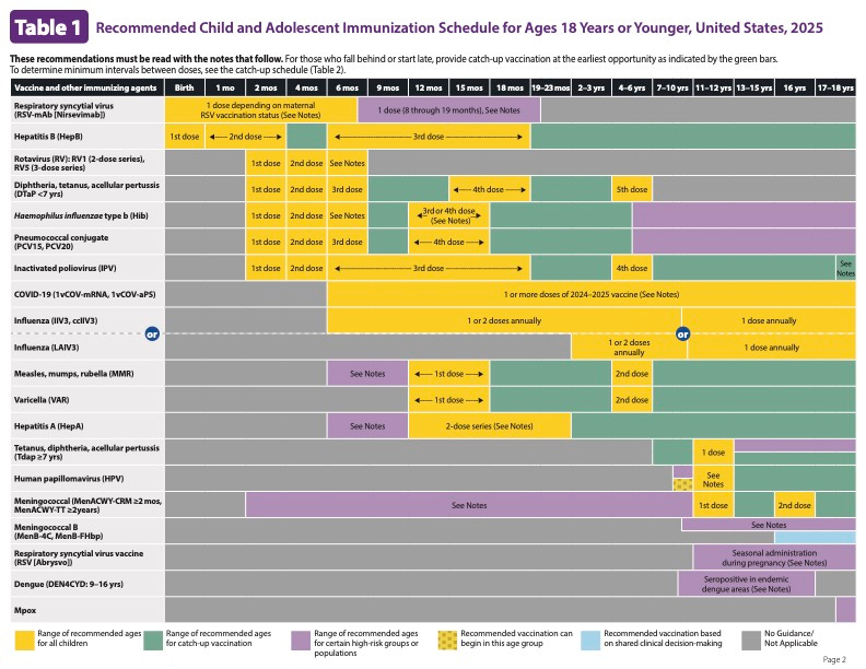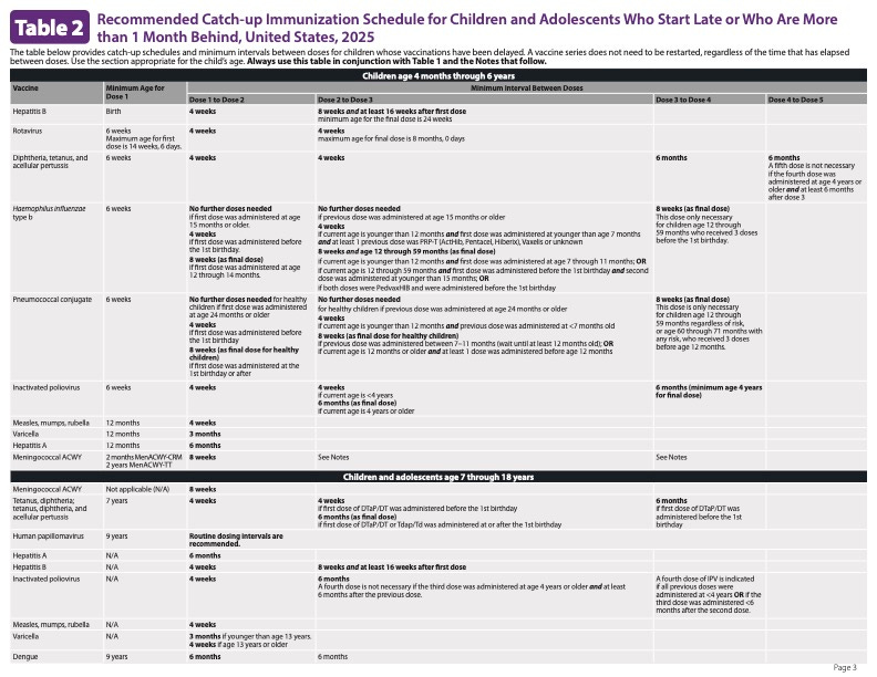 Recommended Child and Adolescent Immunization Schedule for ages 18 years or younger, United States 2025