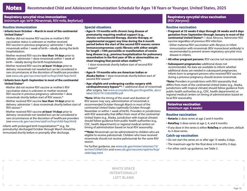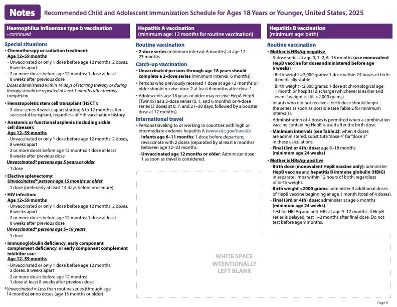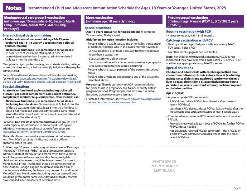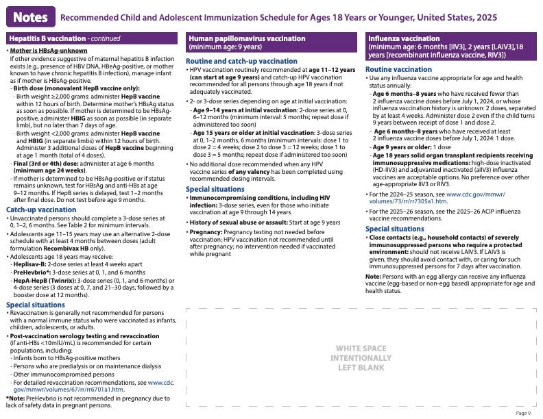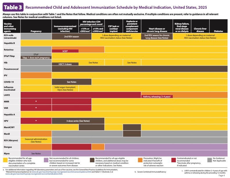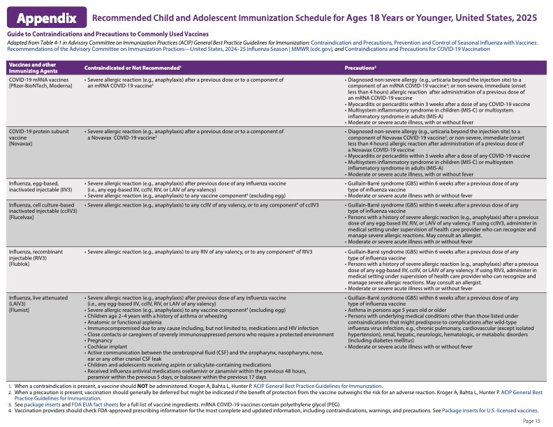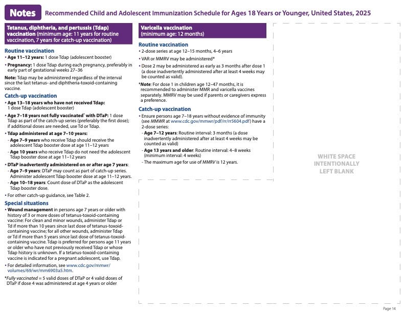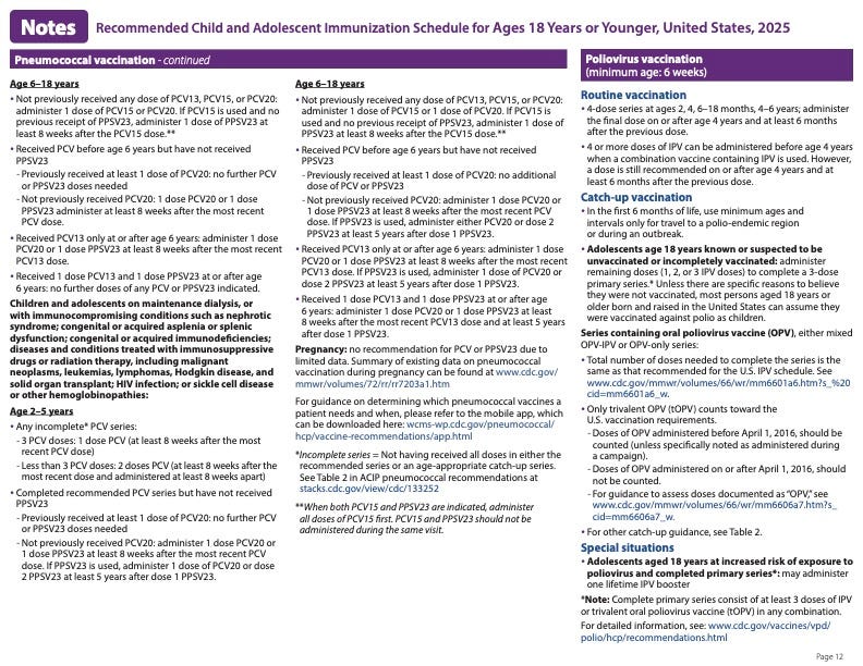Recommended Child and Adolescent Immunization Schedule for ages 18 years or younger, United States 2025