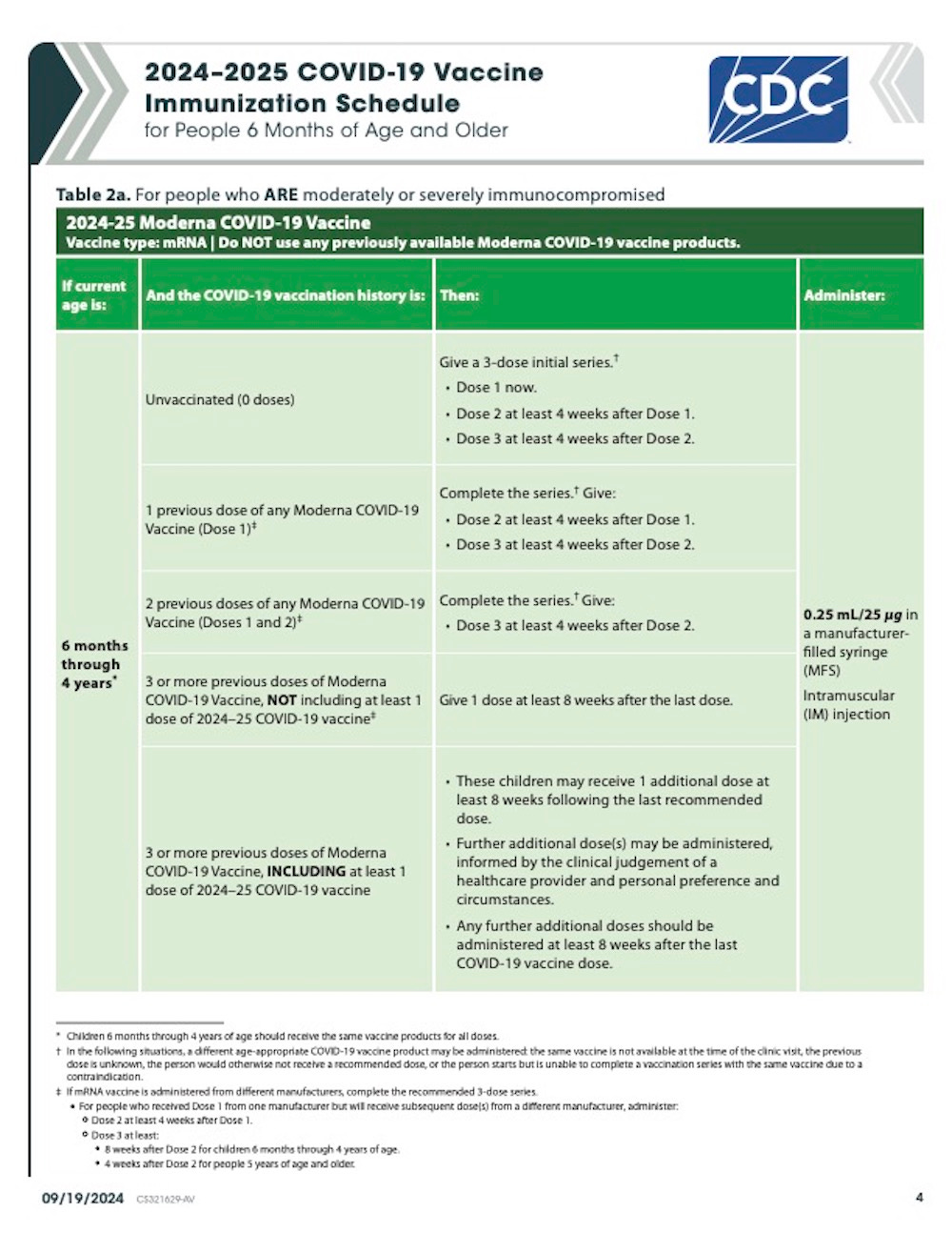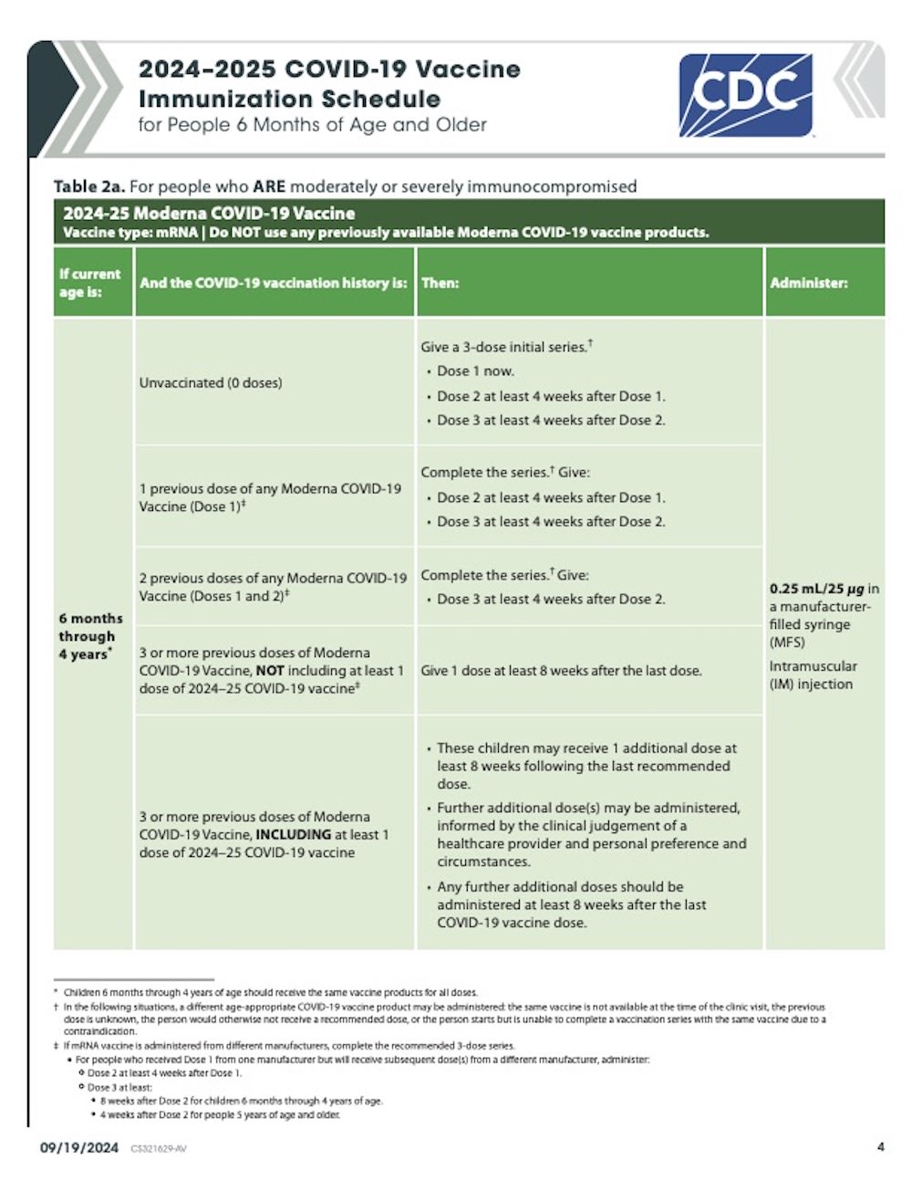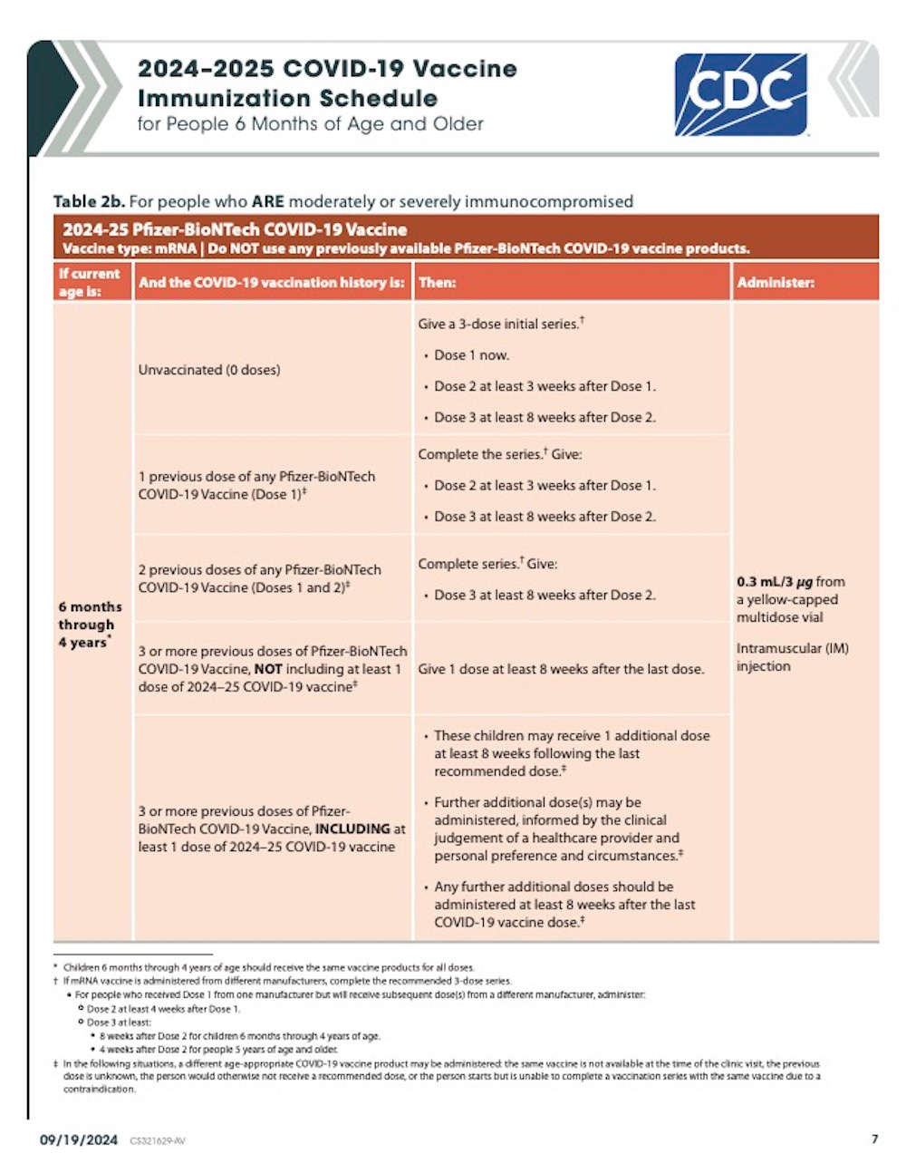 Pages 4-10 are for infants, children, teenagers and adults who ARE moderately or severely immunocompromized.
