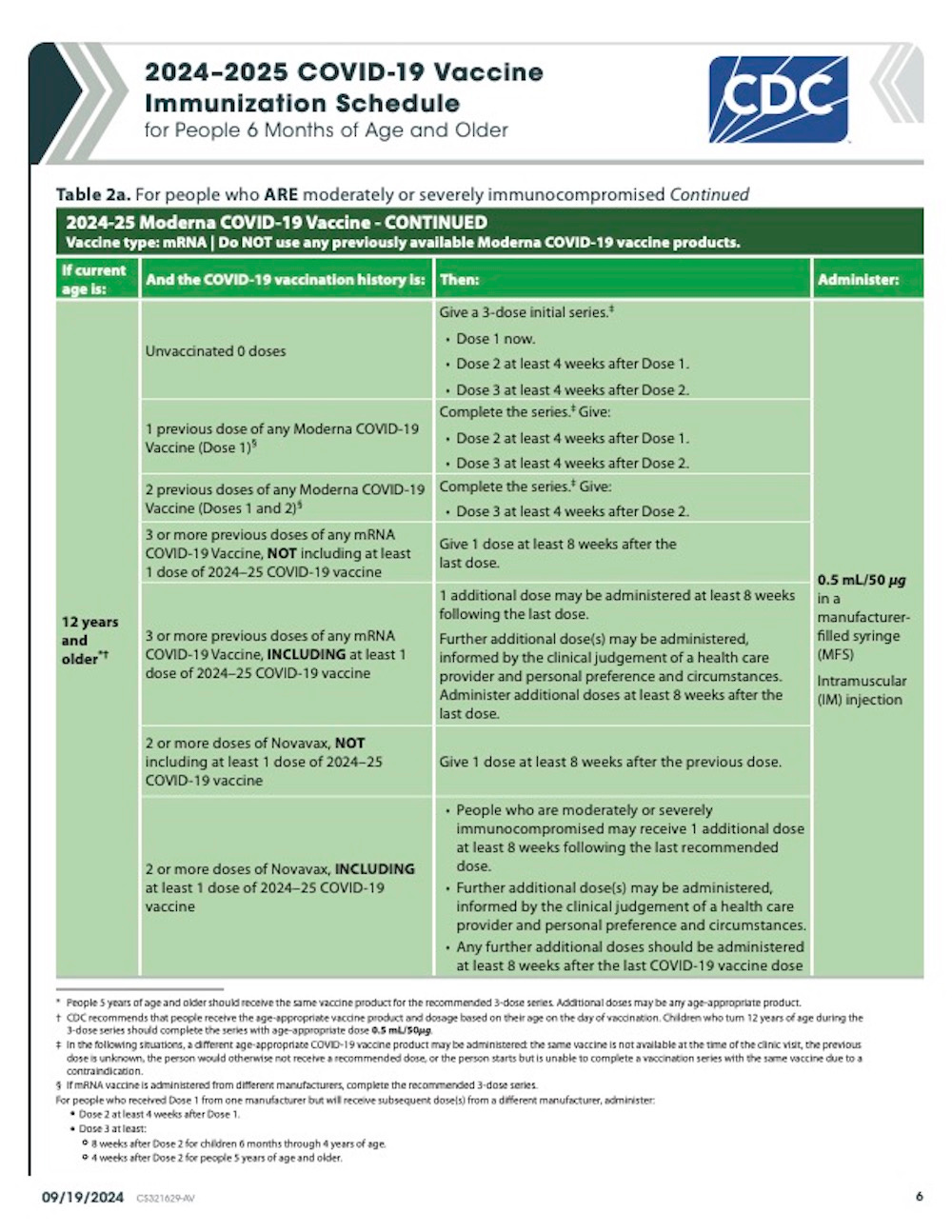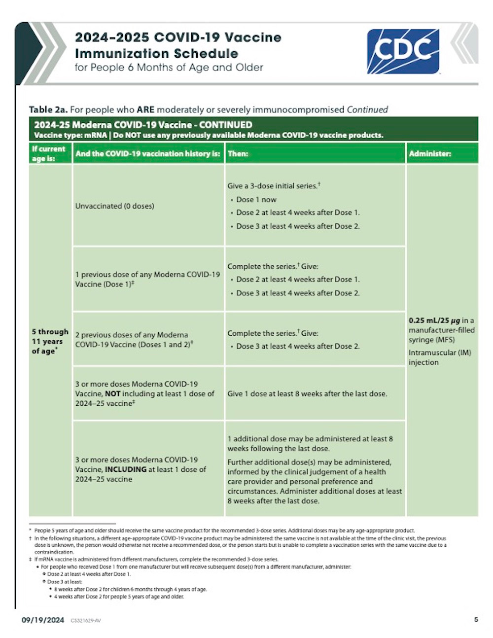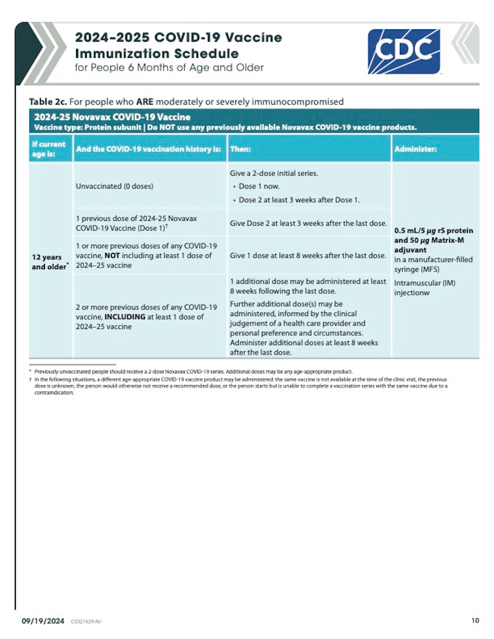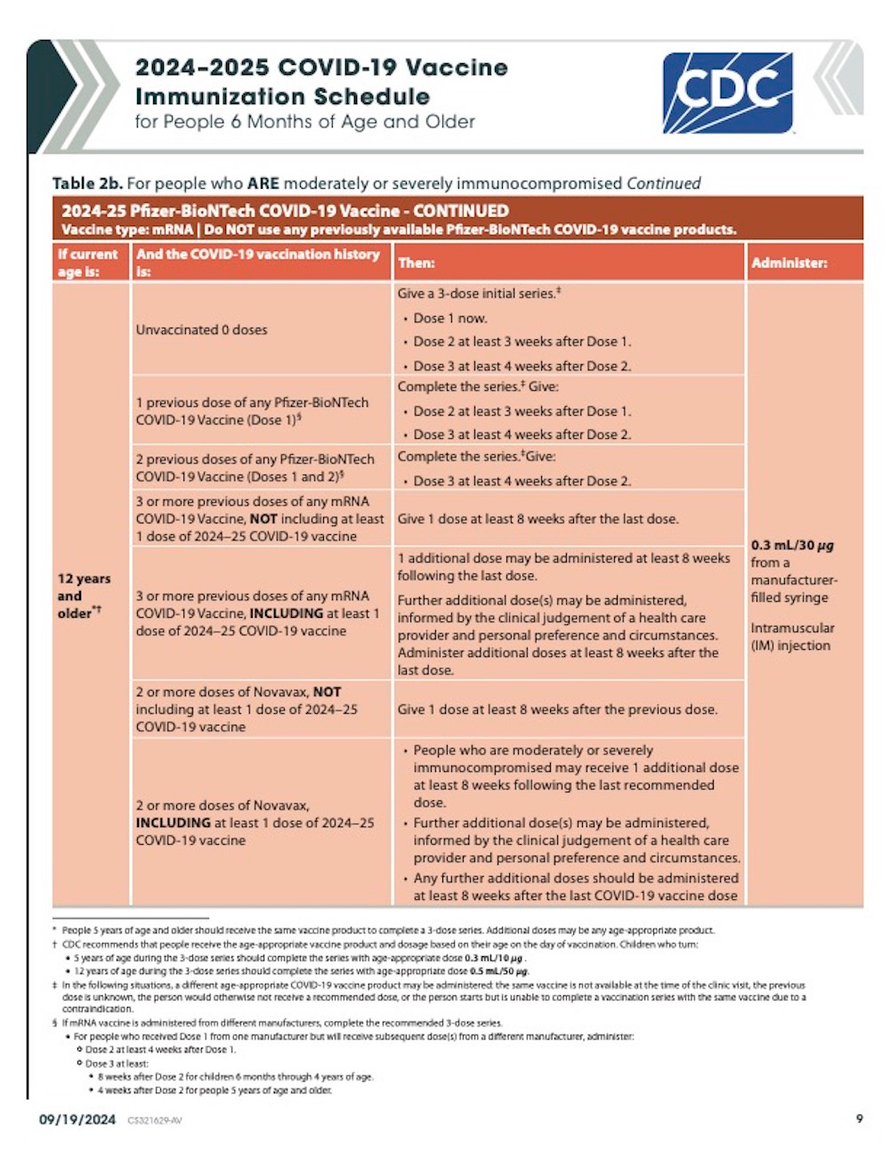 Pages 4-10 are for infants, children, teenagers and adults who ARE moderately or severely immunocompromized.