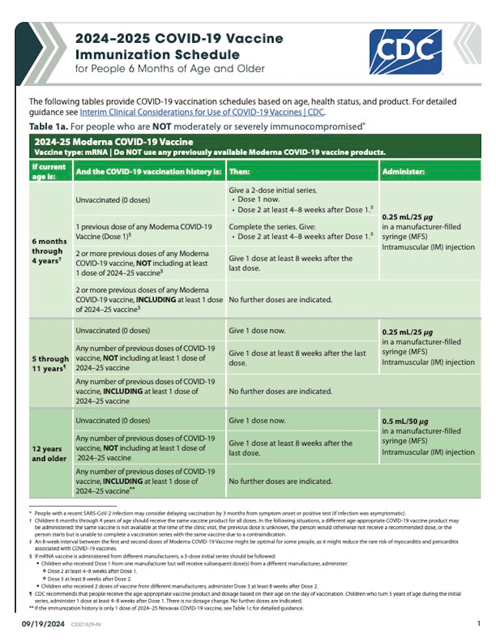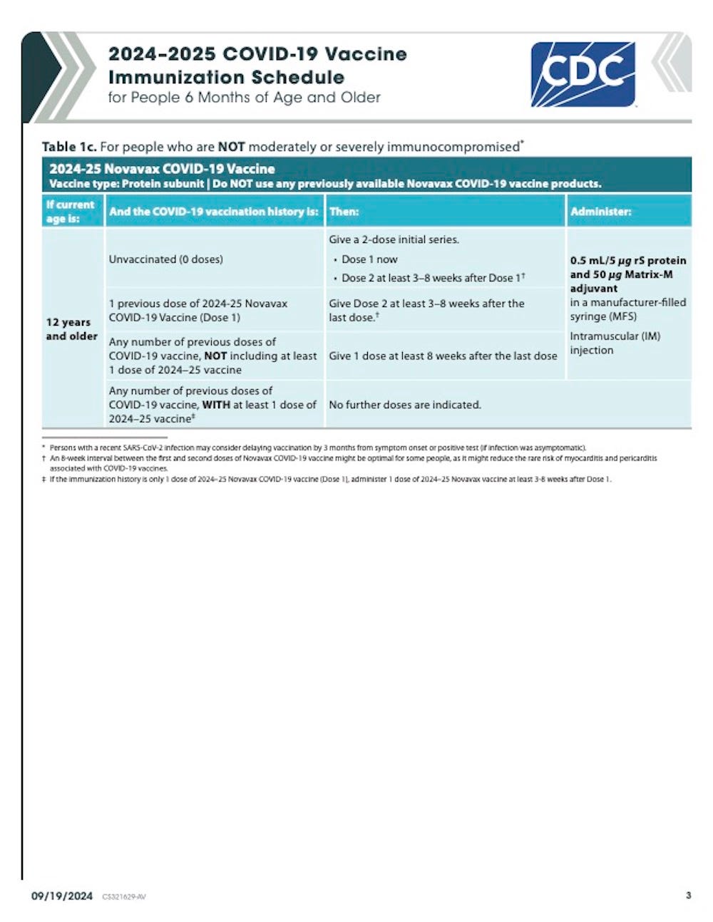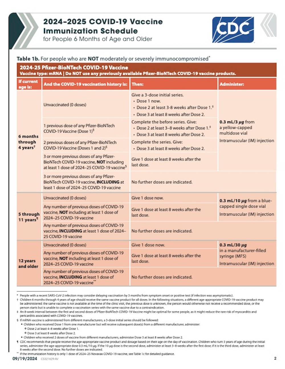 The first three pages below are for infants, children, teenagers and adults who are NOT immunocompromized.