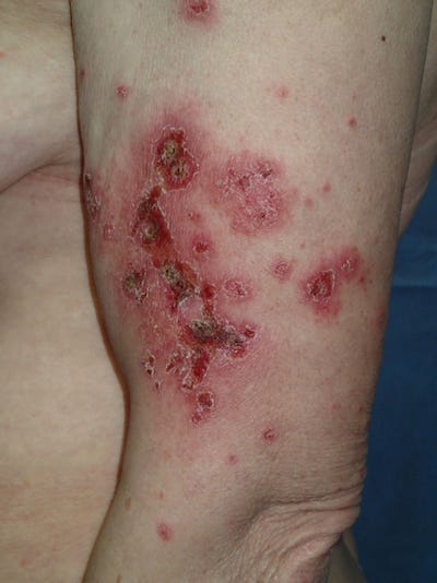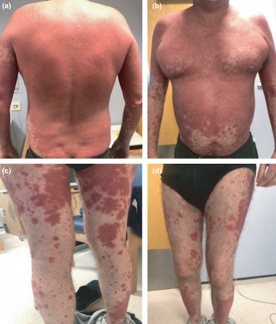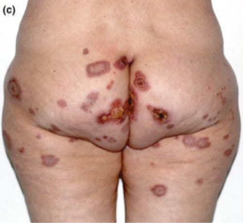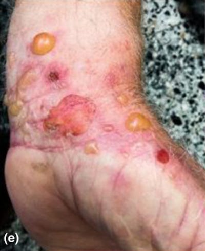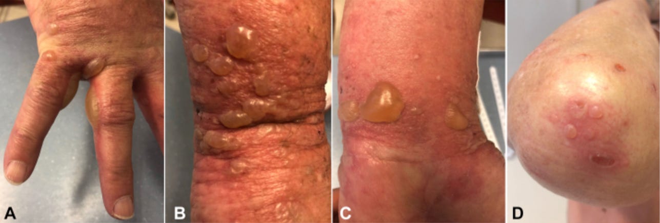 Serious side effects include (facial) paralysis, persistent pain, nerve problems, severe skin reactions, heart attacks, strokes, heart muscle inflammation, permanent disability, and death.