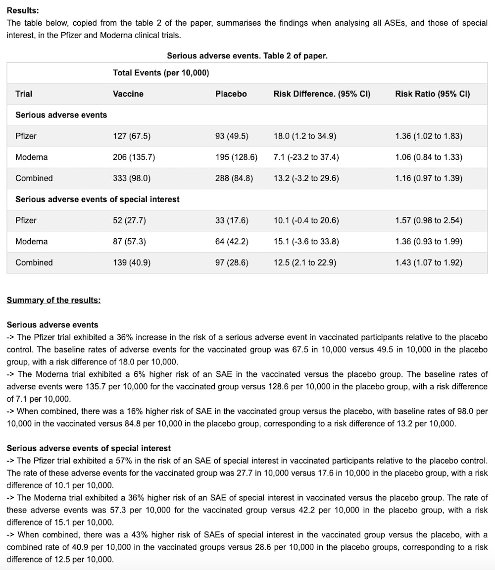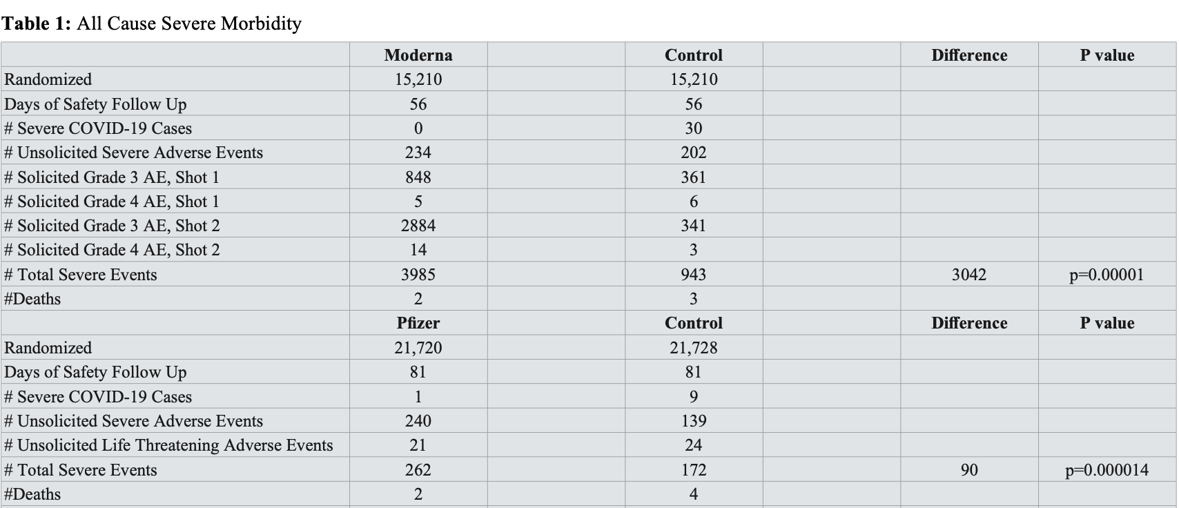 Results prove that none of the vaccines provide a health benefit and all pivotal trials show a statically significant increase in “all cause severe morbidity" in the vaccinated group compared to the placebo group.