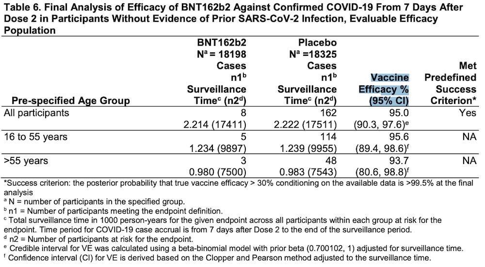 The data below is what Pfizer uses to claim 95% efficacy?