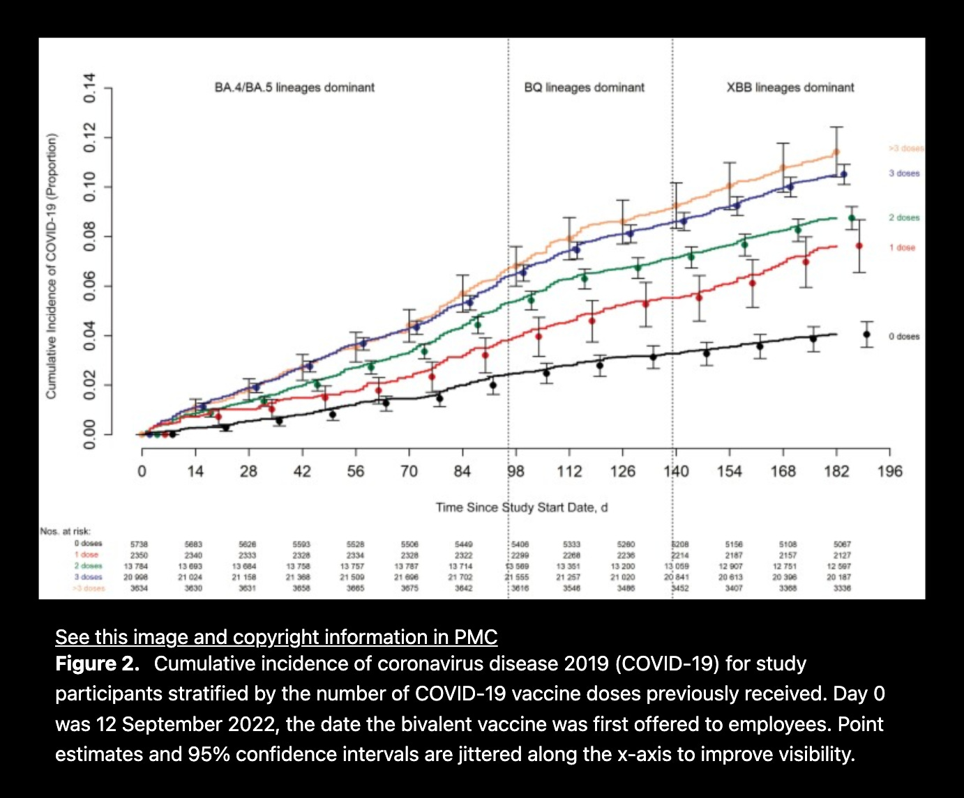 Decreased risk was not found during the XBB-dominant phase (0.96 [.82-.1.12]).