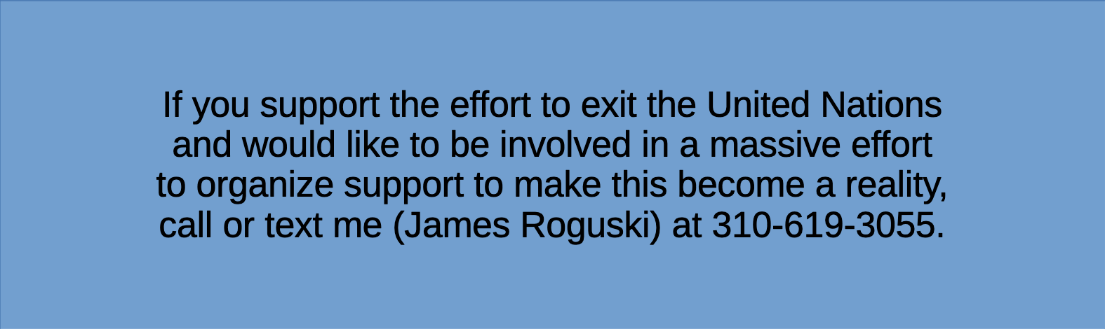 PICK UP YOUR PHONE RIGHT NOW AND CALL YOUR REPRESENTATIVE AND BOTH SENATORS AND DEMAND THAT THEY SUPPORT SENATE BILL 669 TO EXIT THE UNITED NATIONS.