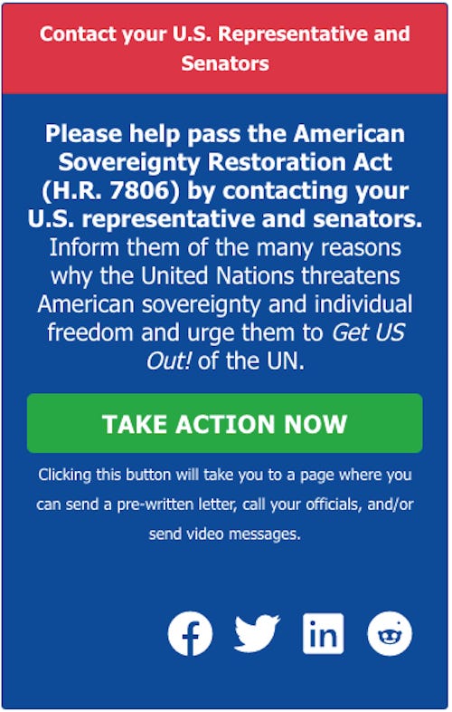 In fact, the process of withdrawing from the United Nations, and all of its special organizations, including the WHO, is, actively underway in the United States through a Bill now before the Congress, HR 7806: The American Sovereignty Restoration Act of 2022.28