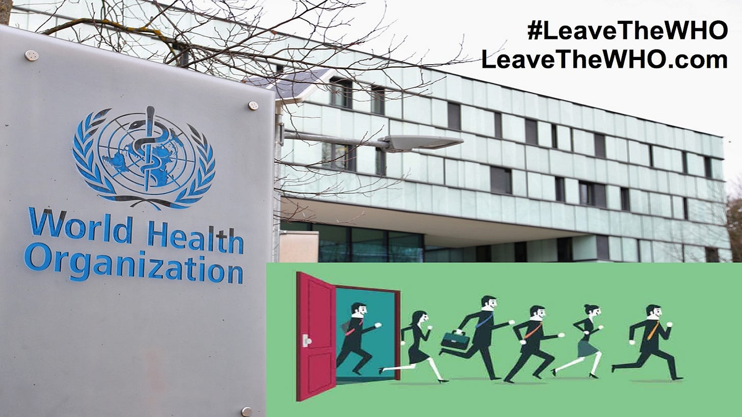 It is the position of this white paper that the WHO and the UN have clearly demonstrated that rather than serving health and autonomy in their member states and their people, they promote exactly the opposite. Before they can act further to damage public health and nation state sovereignty, we urge every nation which values its form of government, its people and their well-being to move with all possible speed to withdraw from even the pretense of WHO/UN’s supra-national powers. That means any country which values sovereignty and personal autonomy must withdraw as rapidly as possible from these dangerous, oppressive organization – the WHO and the UN.