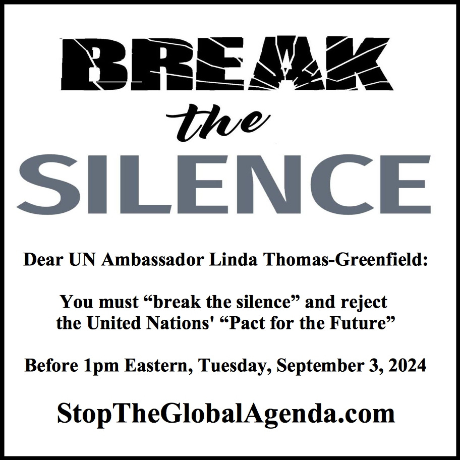 The 193 members of the United Nations have until 1pm Eastern, September 3, 2024 to “break the silence” regarding the third revised version of the “Pact for the Future.” YOUR SILENCE IS YOUR CONSENT.