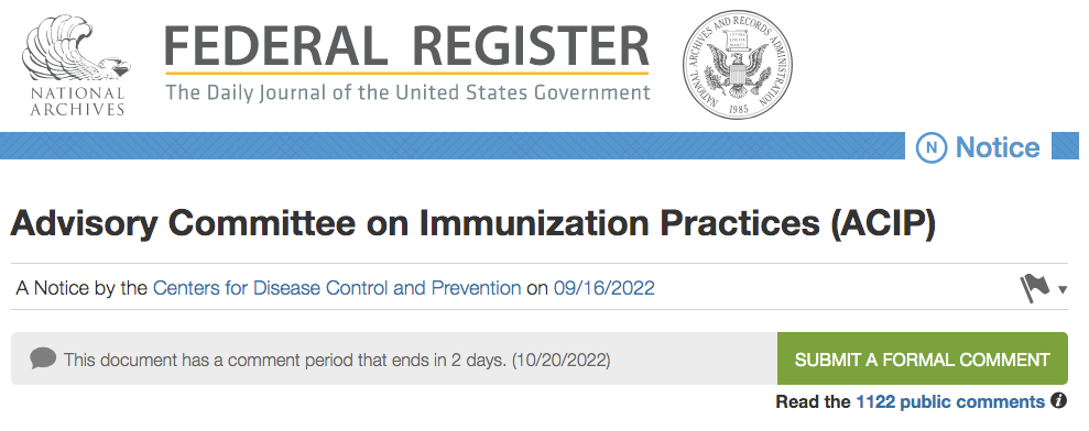 CLICK HERE to submit a comment before October 20, 2022. HOWEVER, be aware that the Federal Register website is designed to mess with your head. When you get to THIS PAGE, you will see the following…