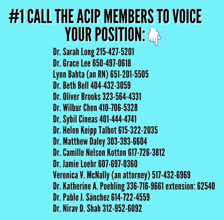 YOU are hereby encouraged to contact the ACIP members and share your “opinion” with them directly.
