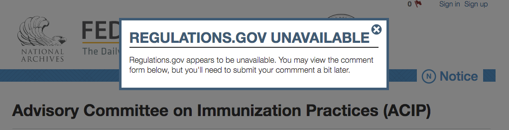 When you click on the green button that says “SUBMIT A FORMAL COMMENT” it is likely that you will be greeted with the popup warning below…