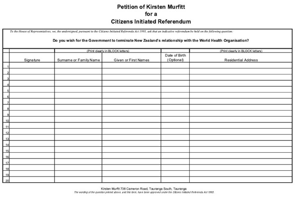 If you live in New Zealand, simply download the Referendum Signature Form below, print it out, sign it, and help collect wet ink signatures from New Zealand citizens who are registered on the New Zealand electoral roll.