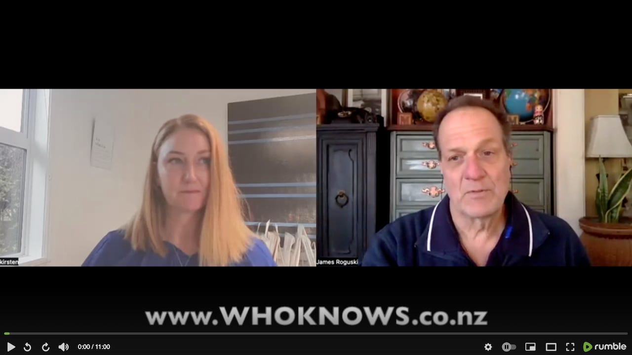 Thank you so much James for helping our dear fearless Kirsten Merritt to get this plea onto the world stage. The sheer amount of effort, at our own expense, to get the truth out to the people and those in positions of power, is staggering. Being such a small country, it's so help and heartwarming to be connected to the likes of yourself. Shame on the NZ Govt, shame on them all. The wrong people are in charge. Everywhere.