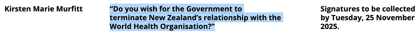 Please watch the discussion with Kirsten Murfitt regarding the referendum to terminate New Zealand’s relationship with the World Health Organisation:
