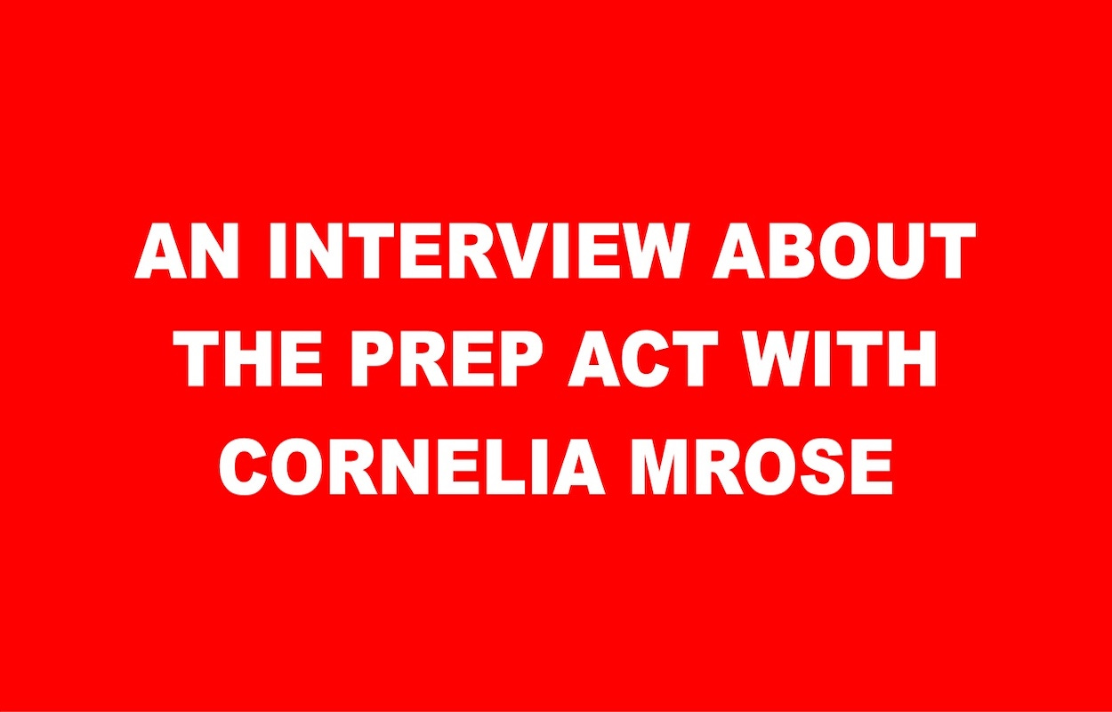 I would like to thank Cornelia Mrose for the opportunity to have an extended discussion with her regarding the effort to REPEAL THE PREP ACT.