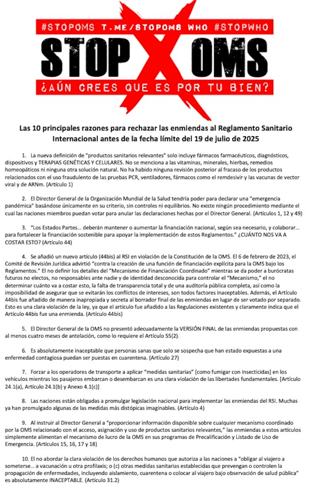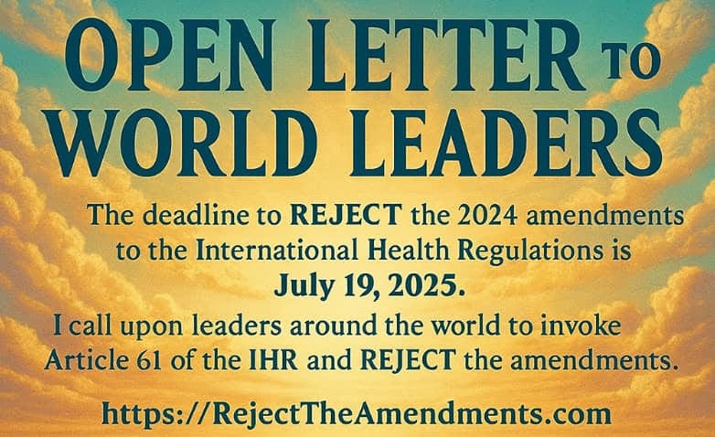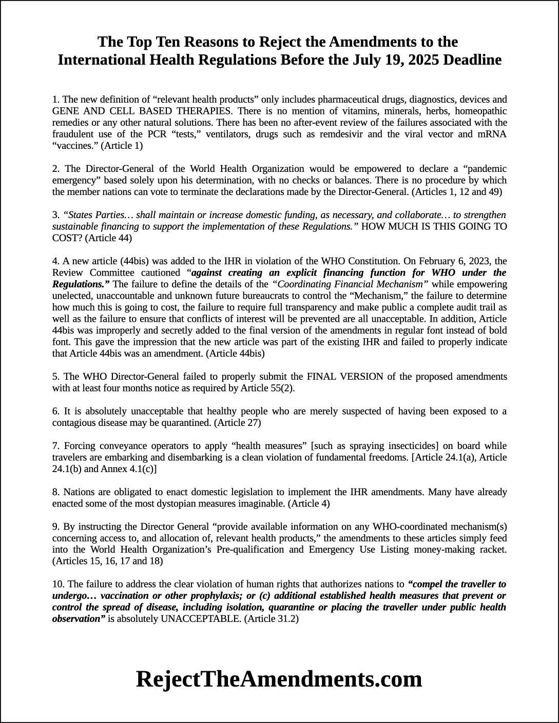 The deadline to REJECT the amendments to the International Health Regulations is July 19, 2025. TAKE ACTION NOW!