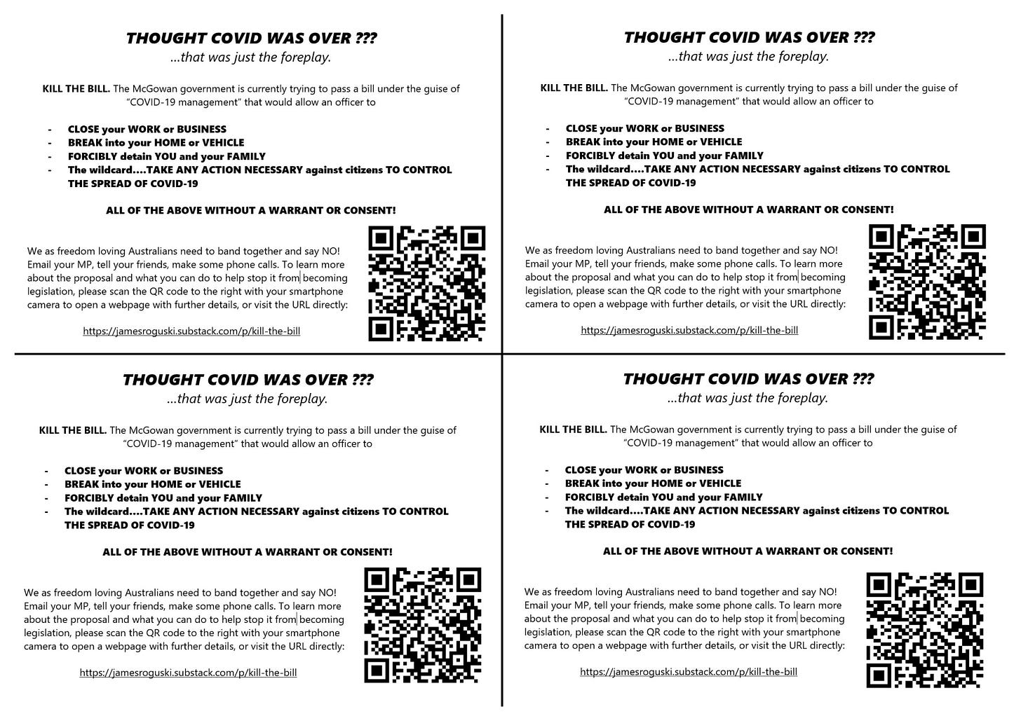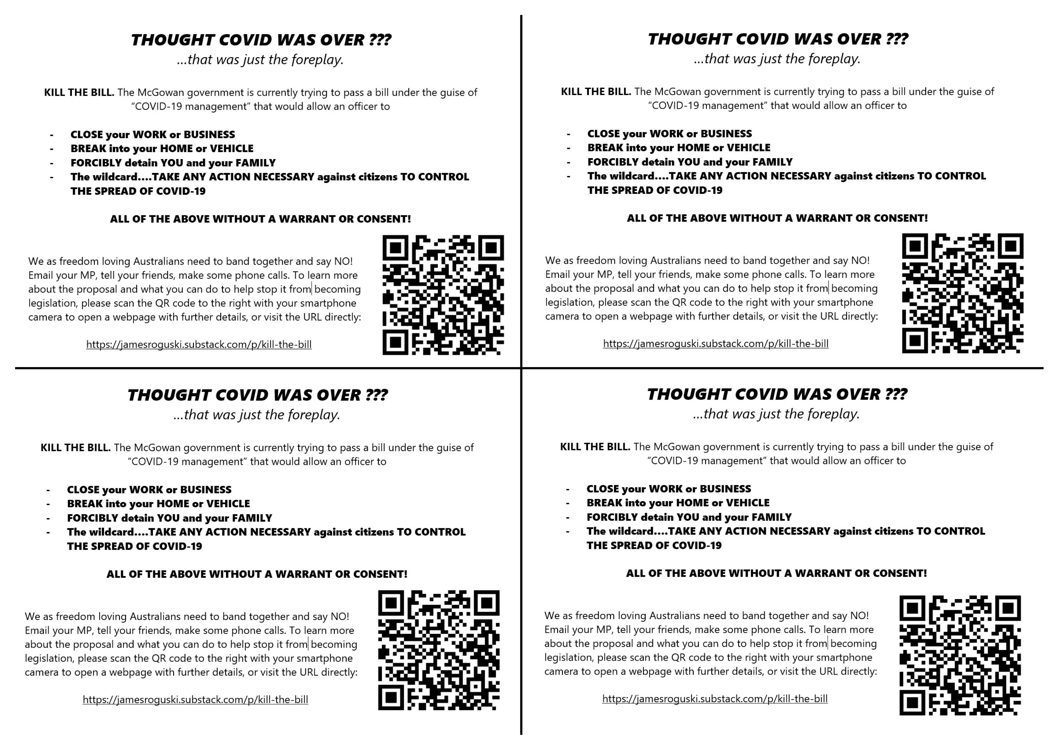 Make sure that every person you know is made aware of this disgusting attempt to establish tyranny in Western Australia.