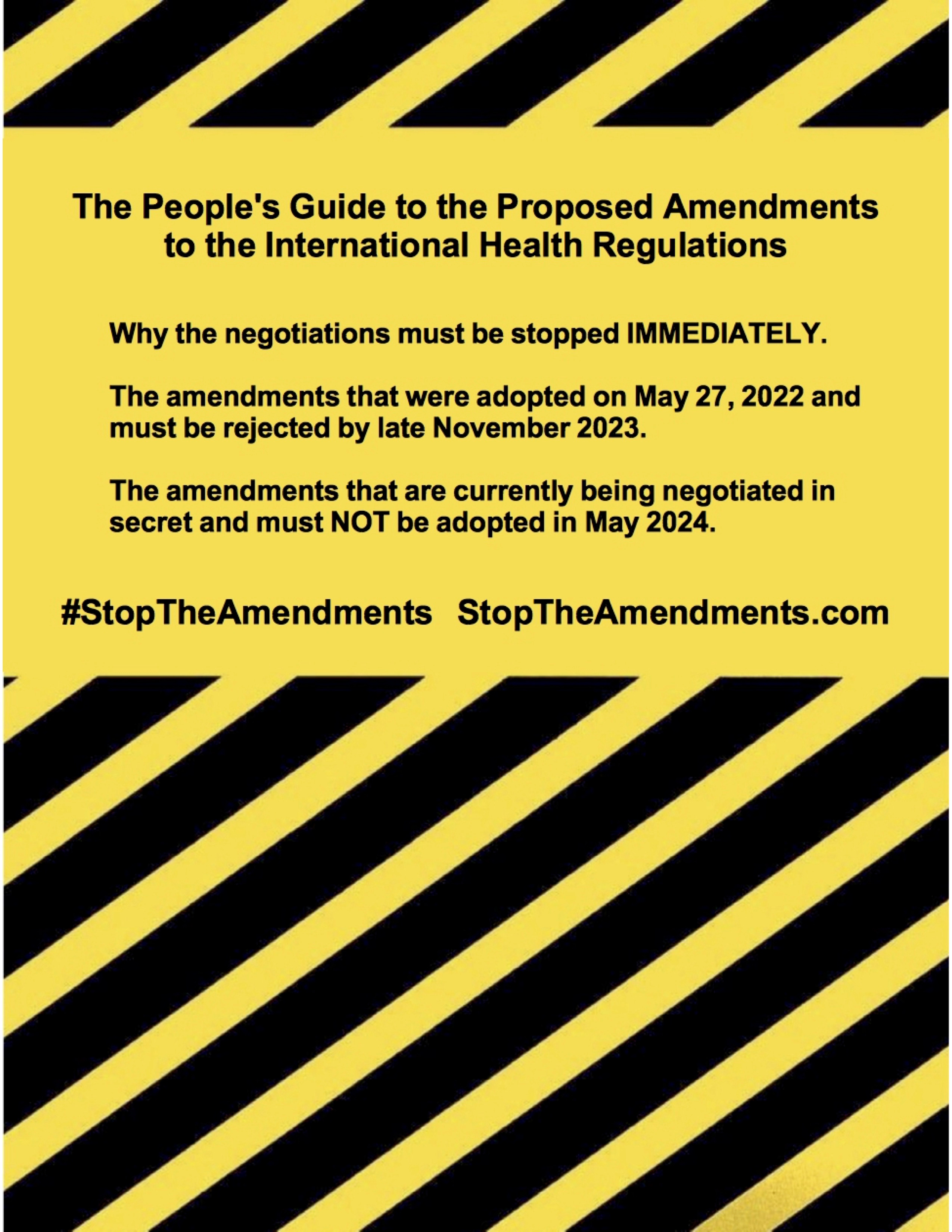 Don’t stop at 100,000 signatures. Even after the goal has been reached, please continue to spread the word about the amendments that were adopted last year as well as the 300+ additional amendments to the International Health Regulations that are currently being negotiated in secret.