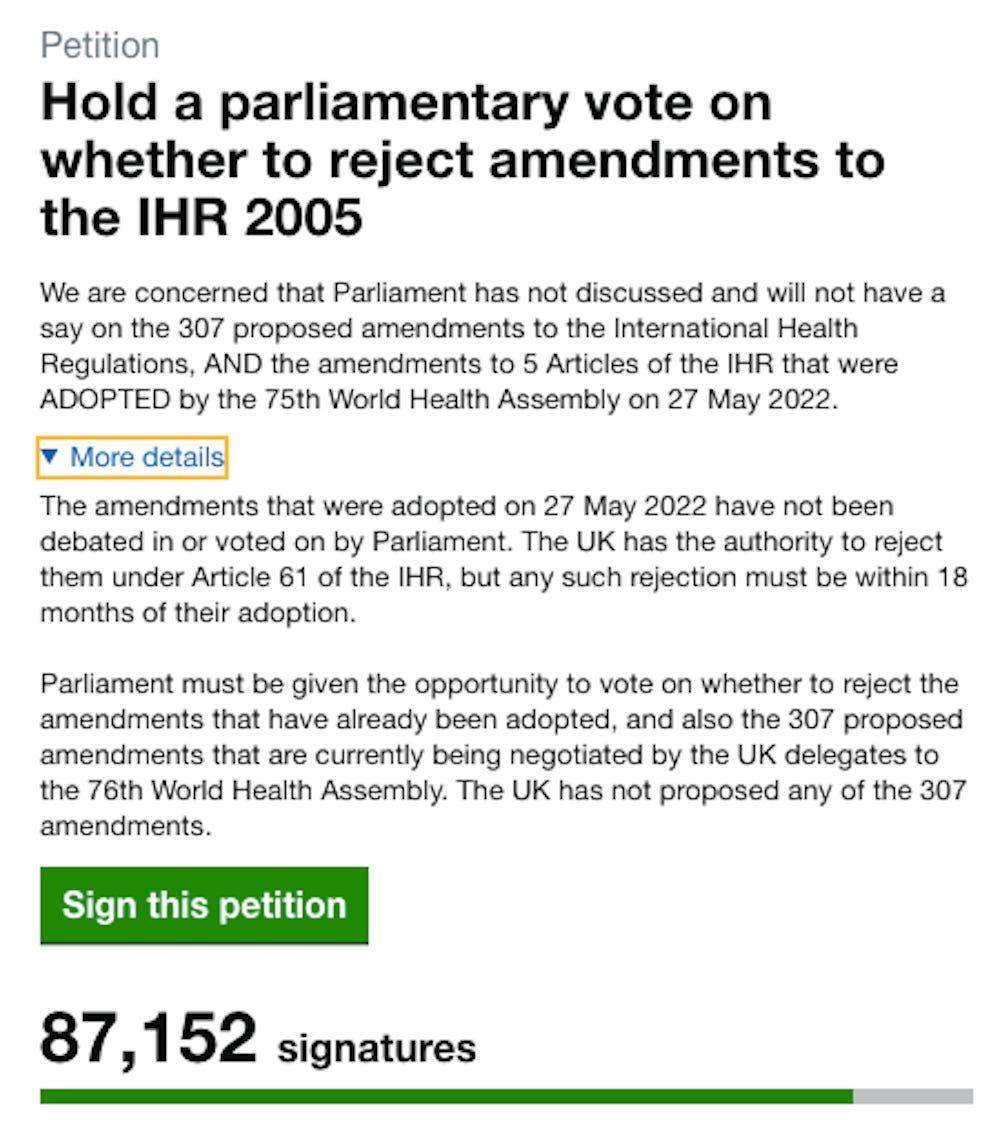 We are concerned that Parliament has not discussed and will not have a say on the 307 proposed amendments to the International Health Regulations, AND the amendments to 5 Articles of the IHR that were ADOPTED by the 75th World Health Assembly on 27 May 2022.