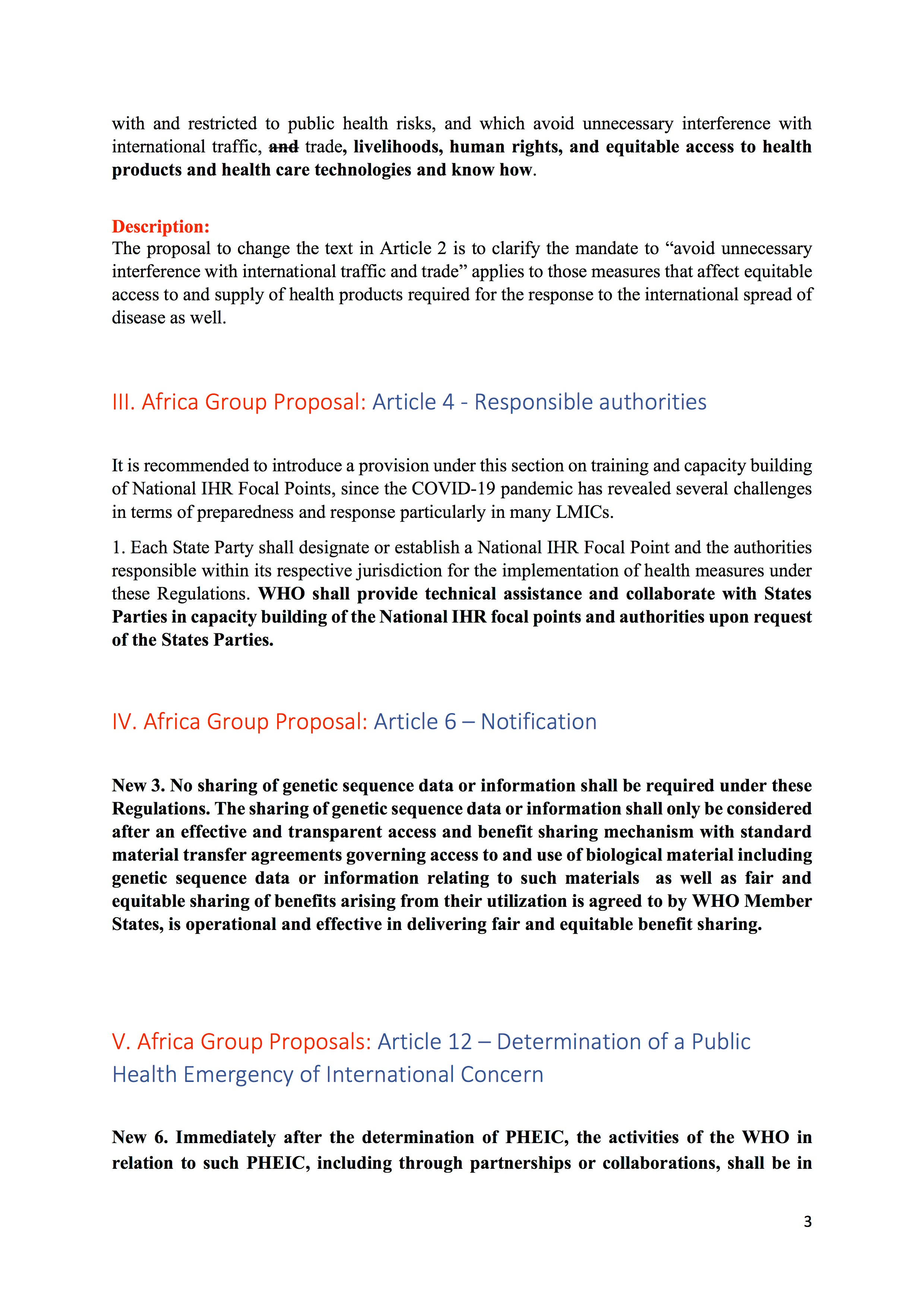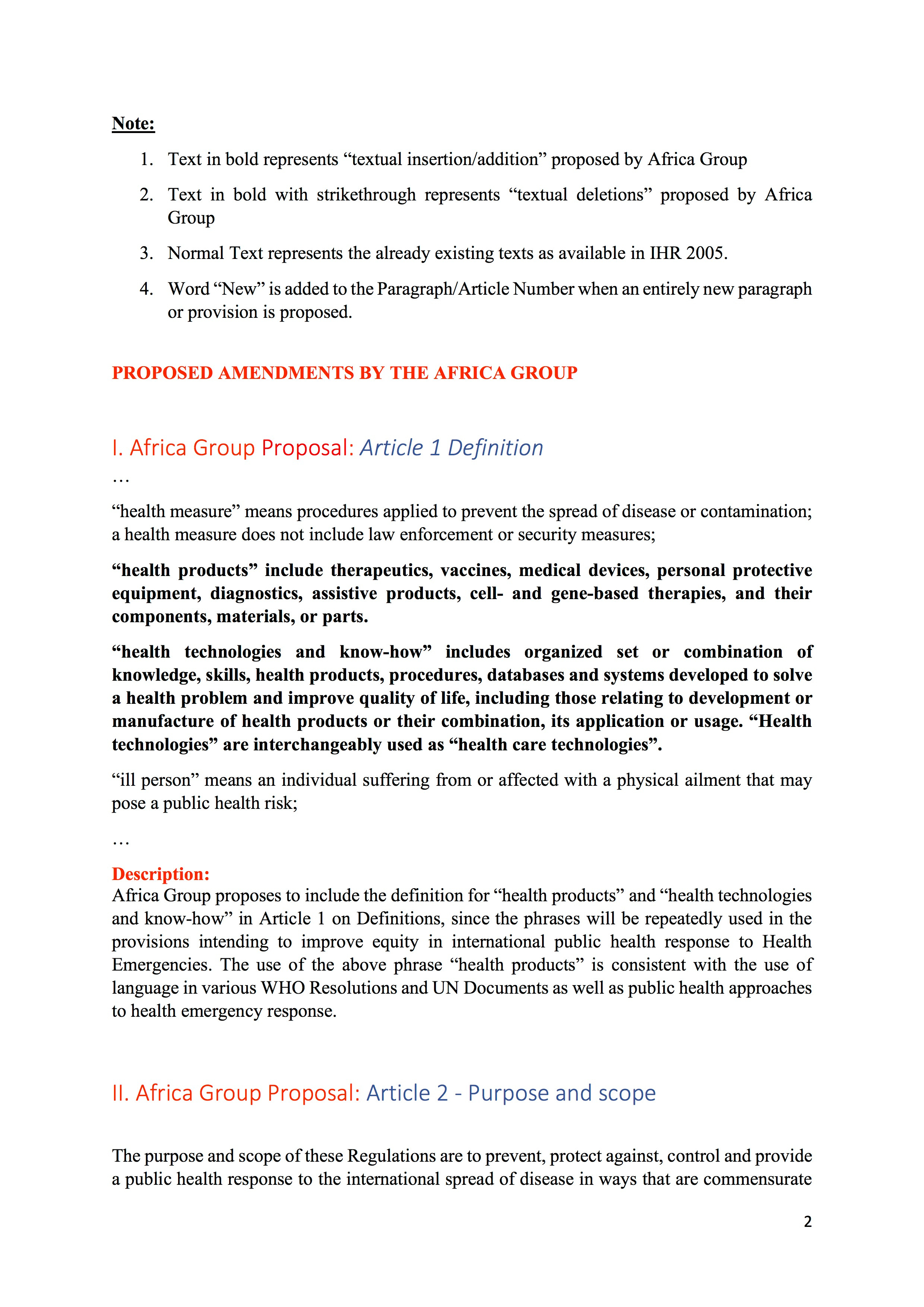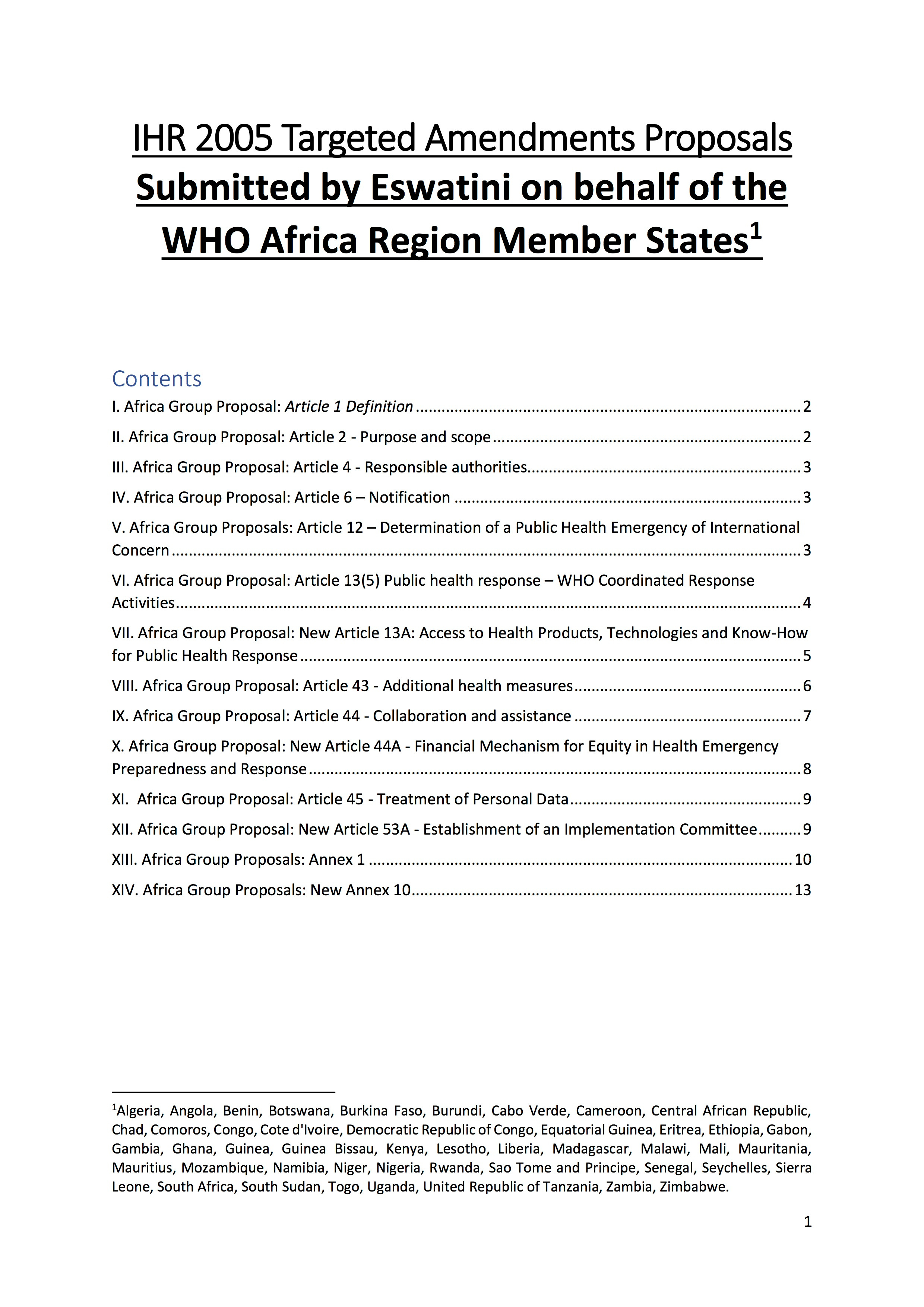 The proposed amendments to the International Health Regulations that were submitted by Eswatini on behalf of the 47 nations of the World Health Organizations African Region are below.